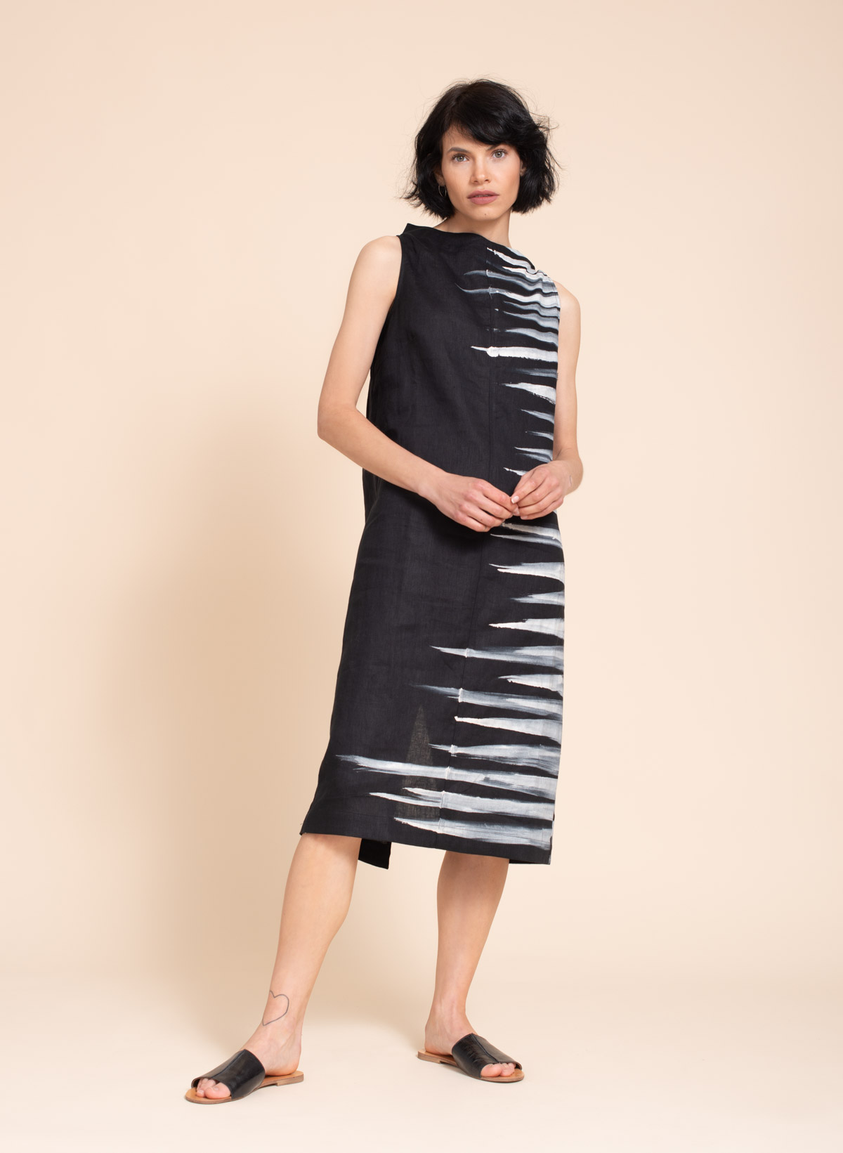 Amber hand printed linen dress.
