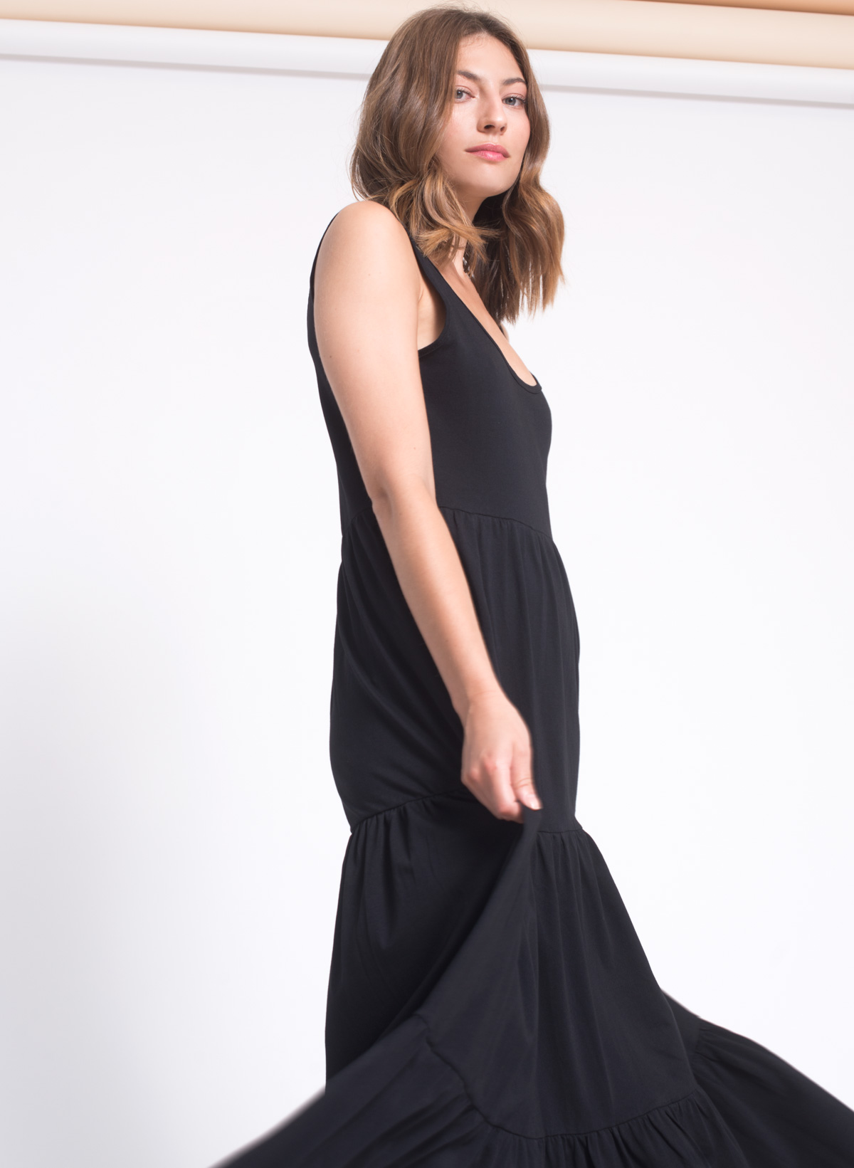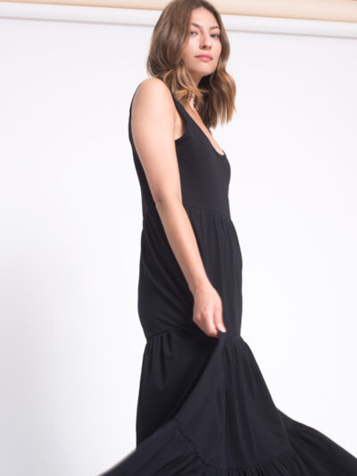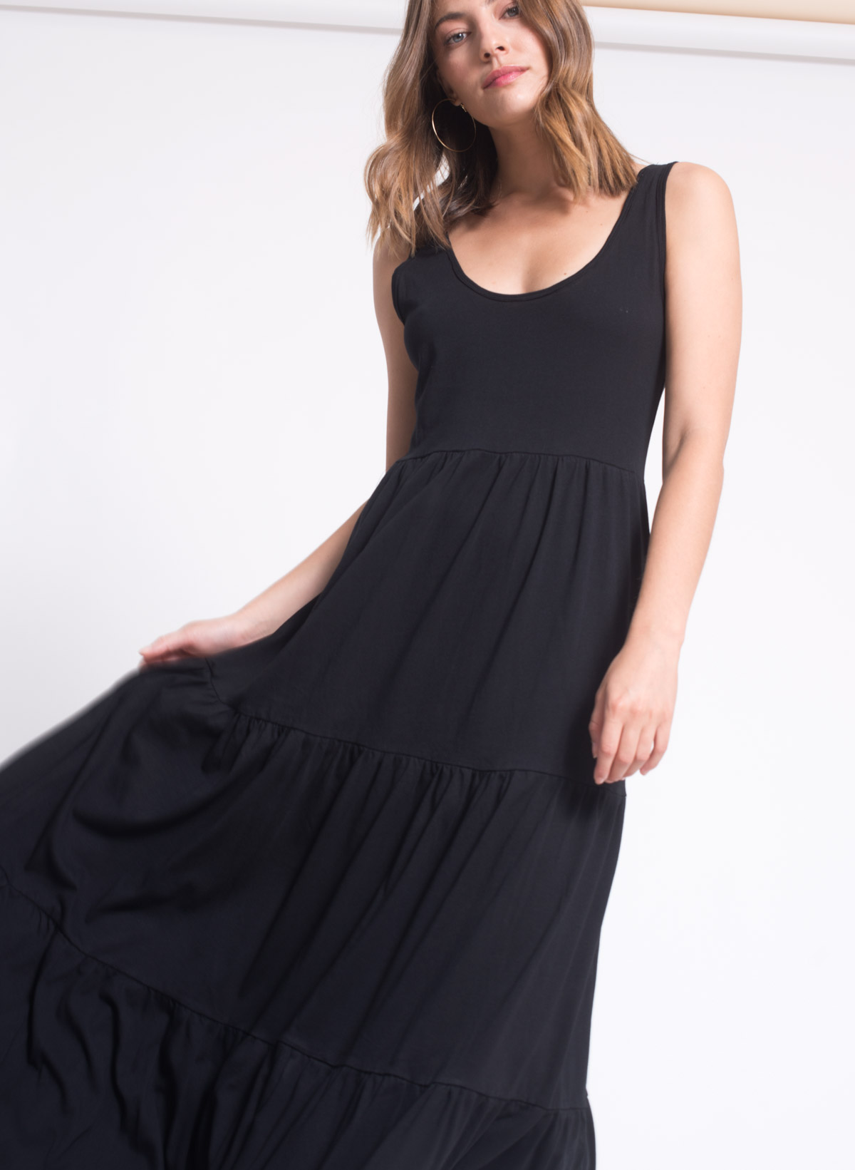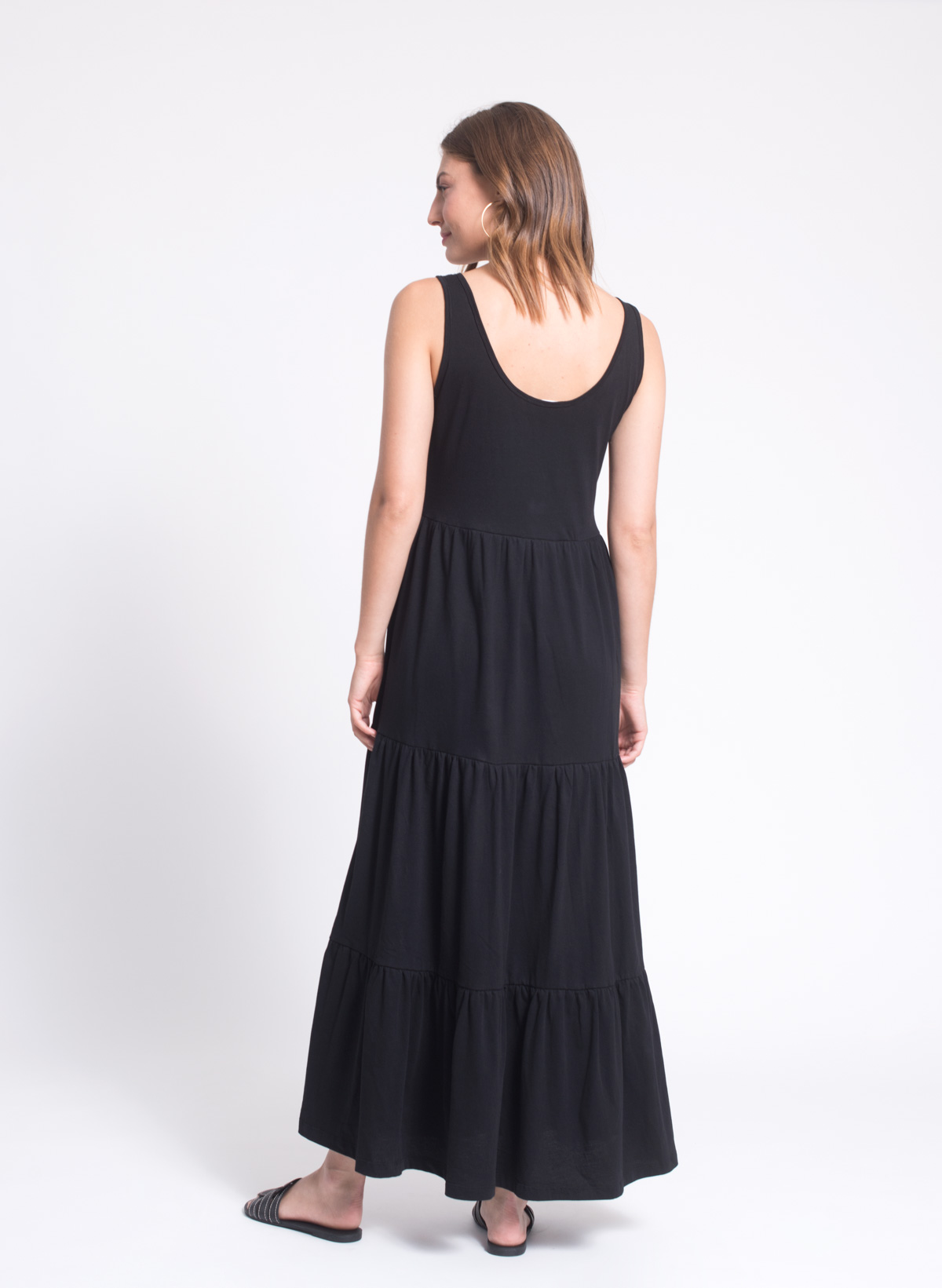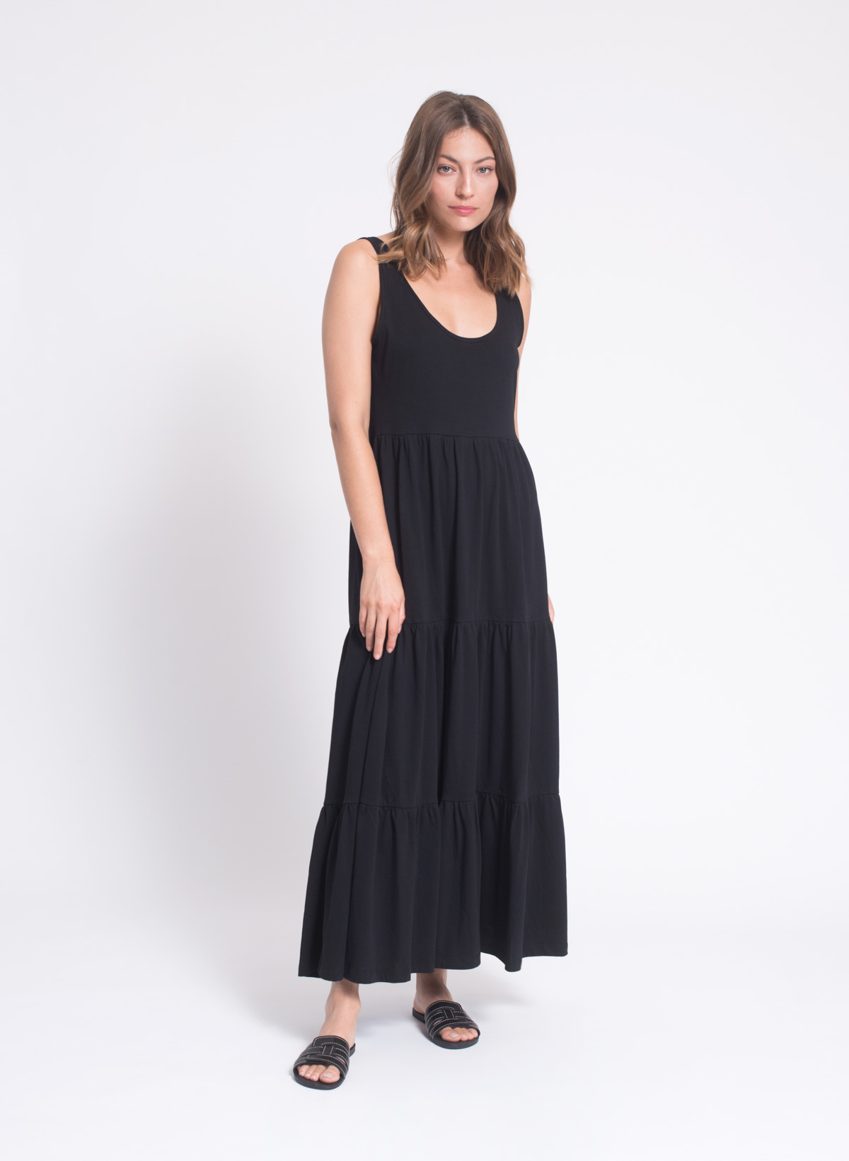 Sharon cotton jersey tiered maxi dress.