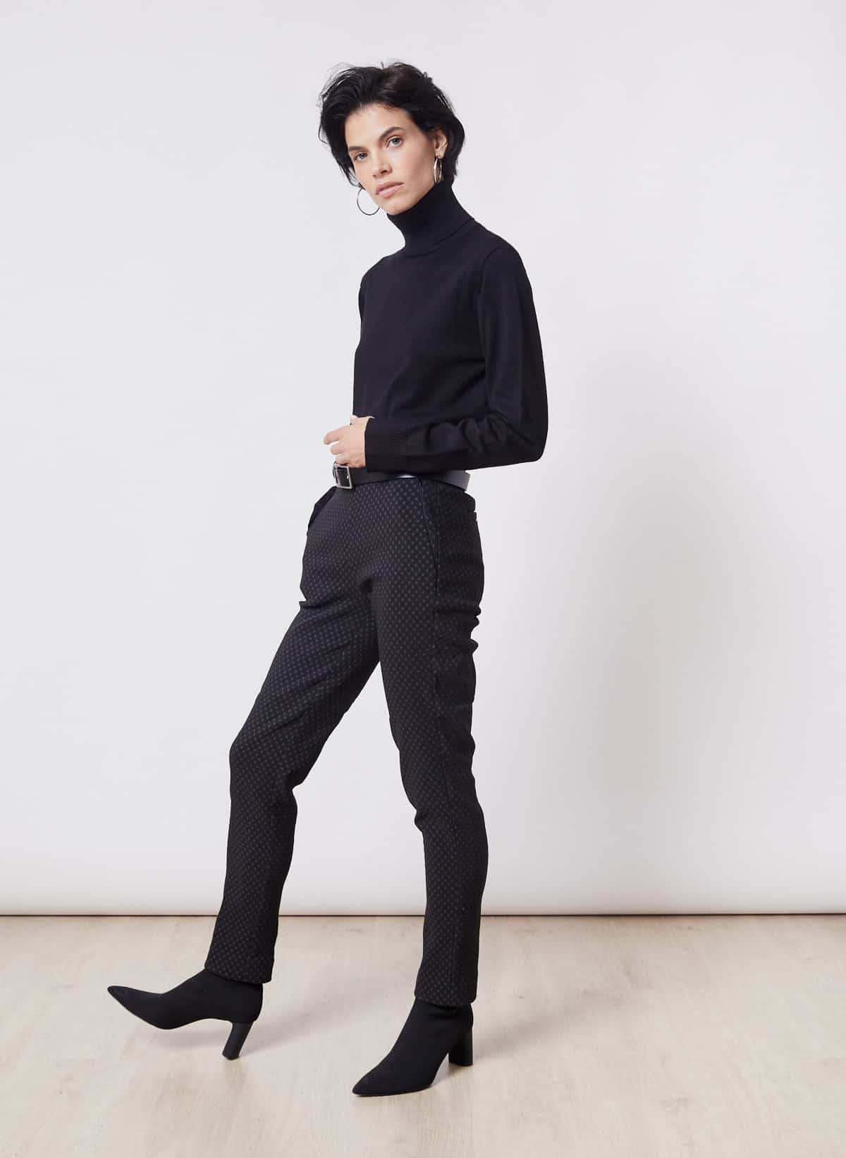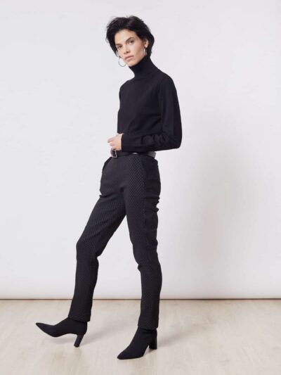 Joel/20 fitted pencil shape pants with elastic waist and zipped side pockets.