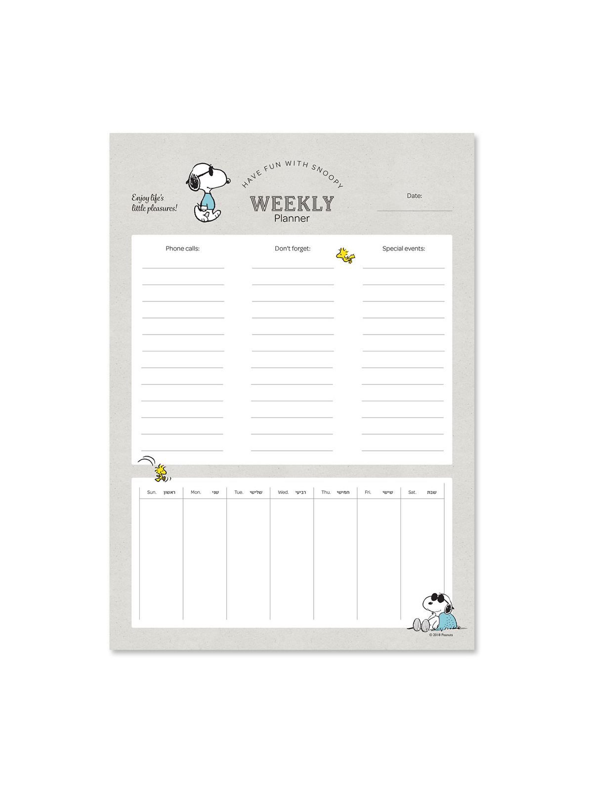 בלוק תכנון שבועי | סנופי | אפור