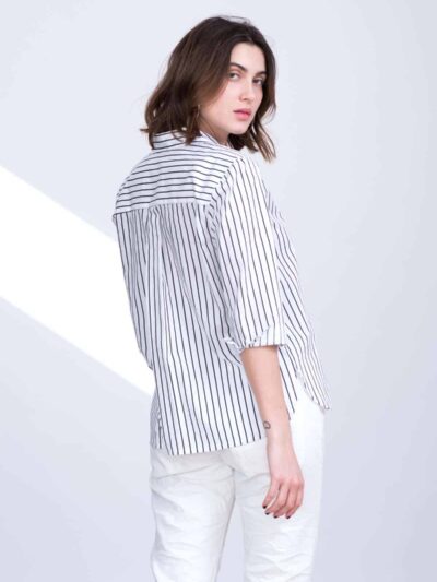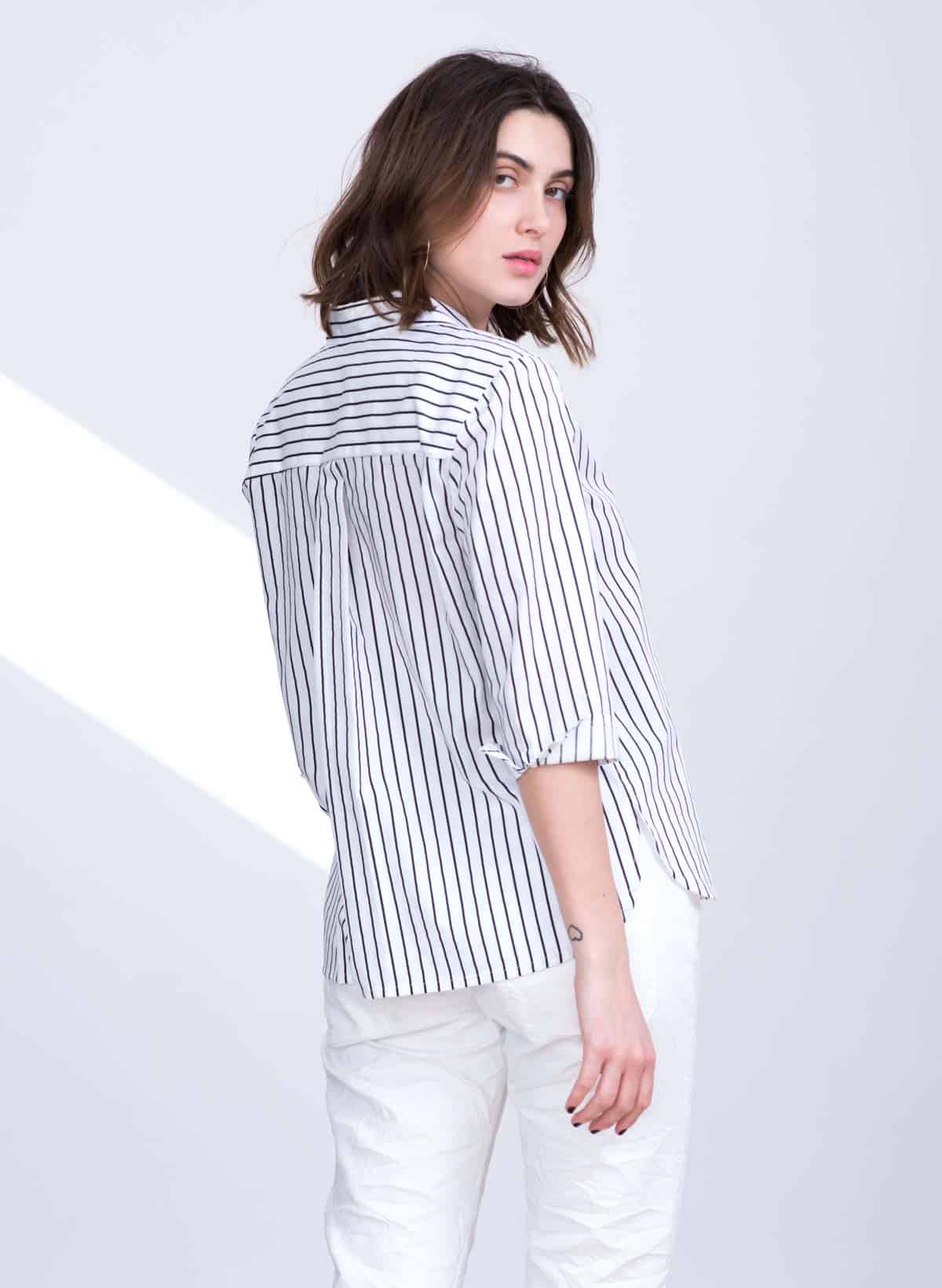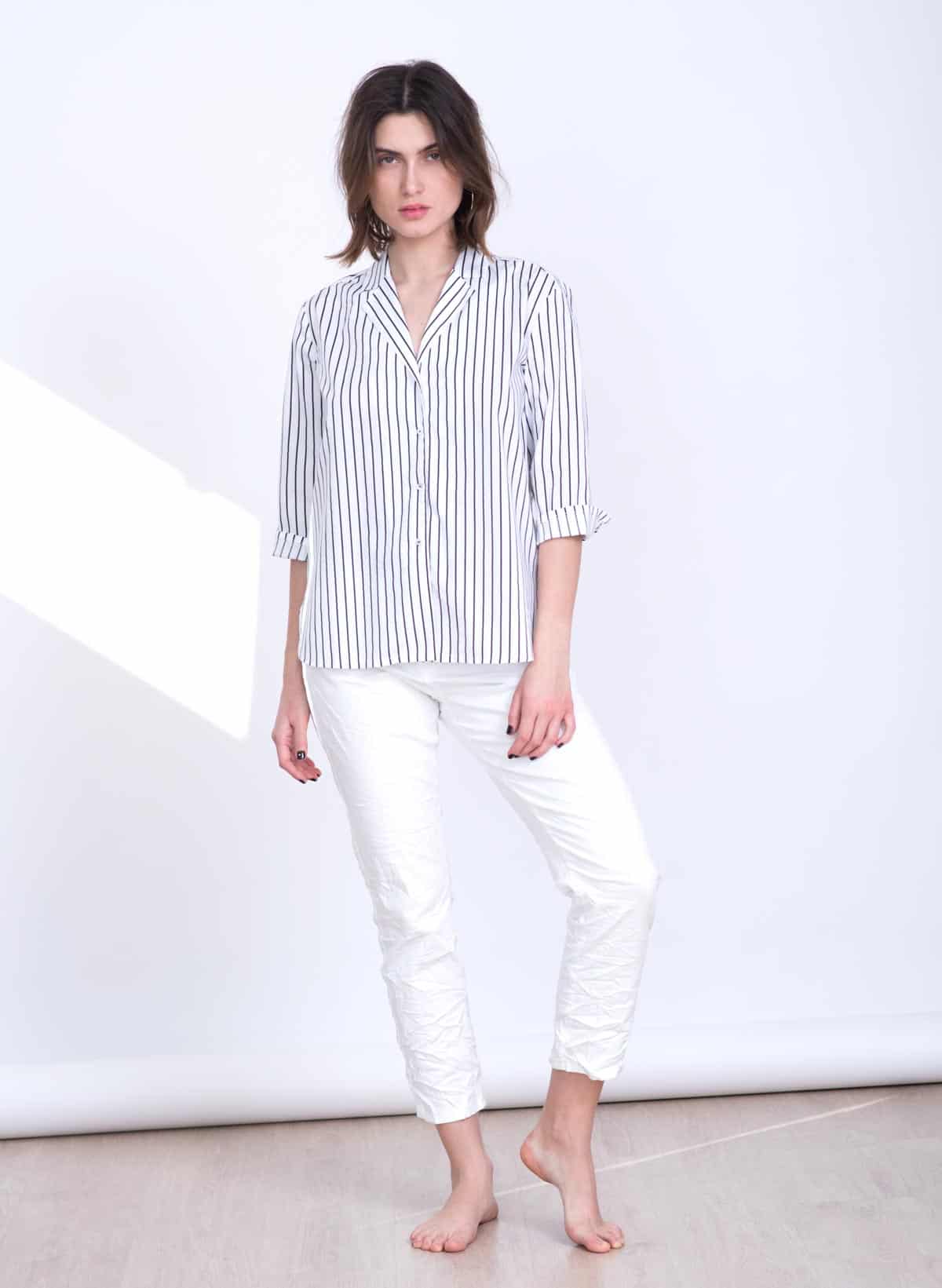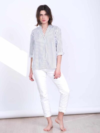 Marseille feminine striped cotton spandex blouse with jacket collar.