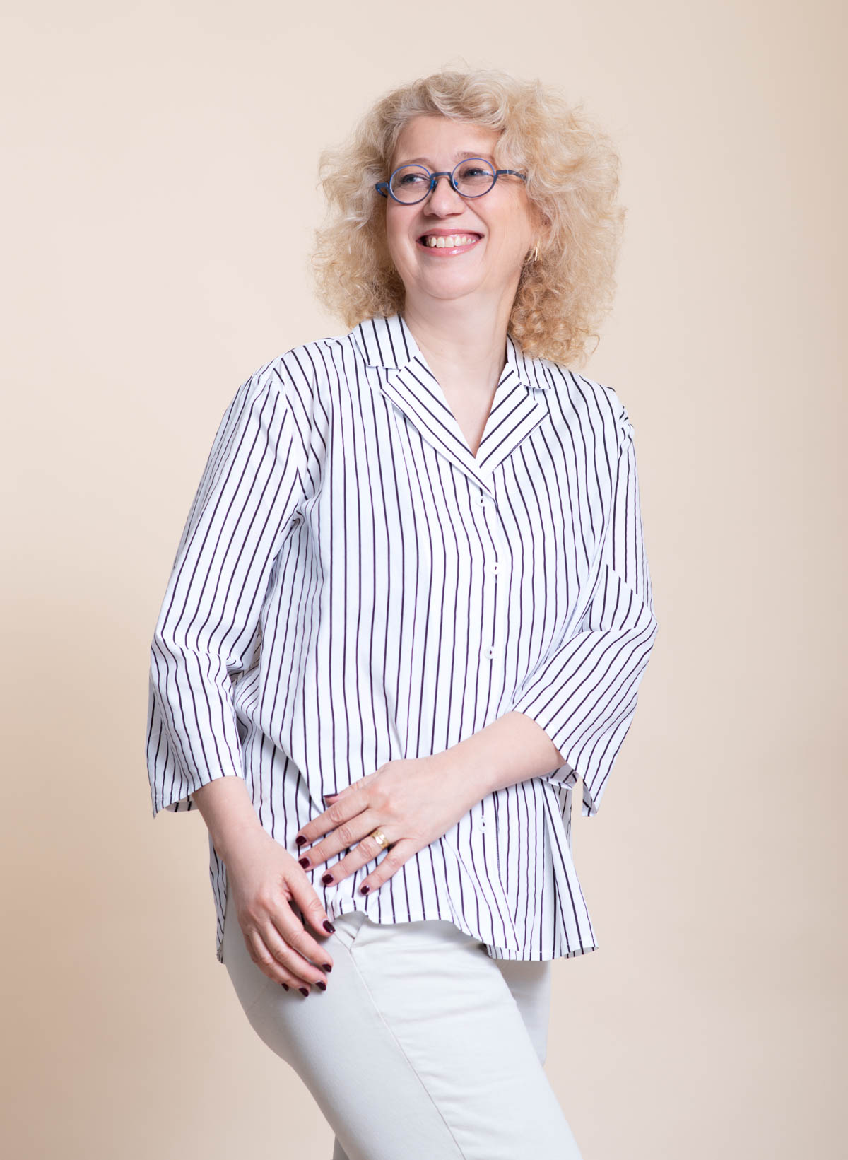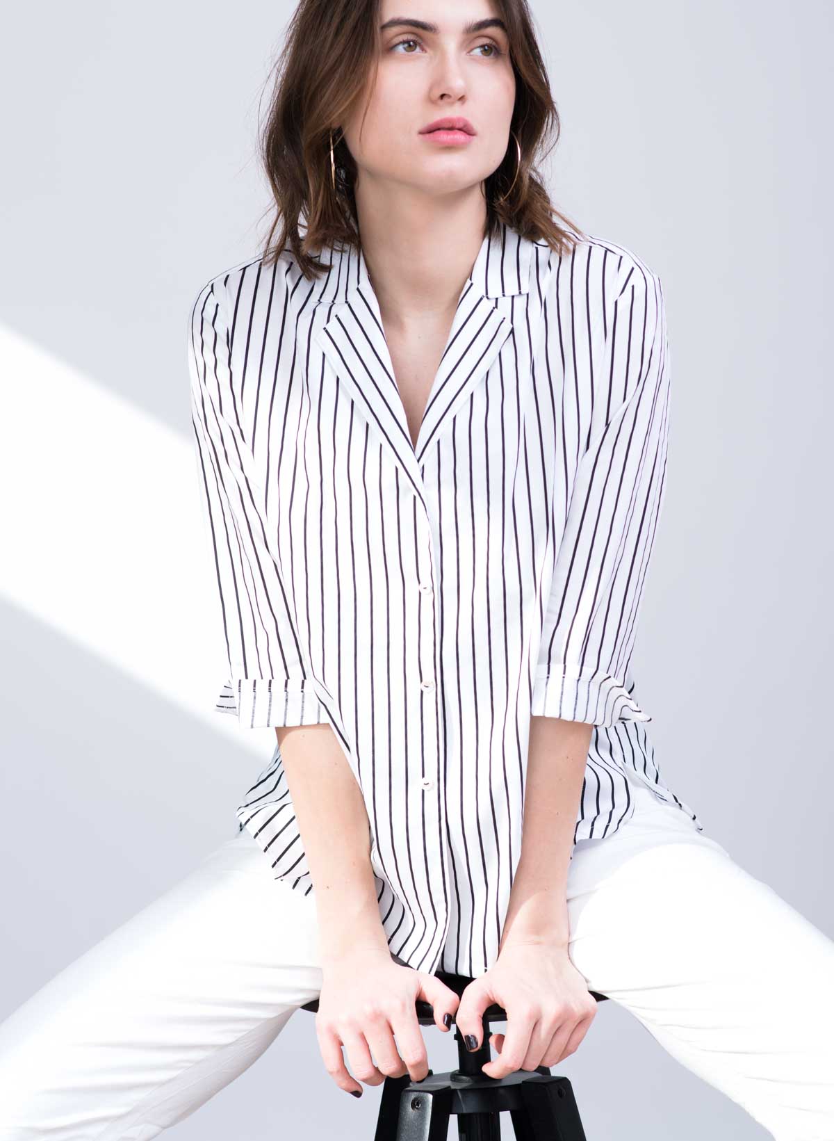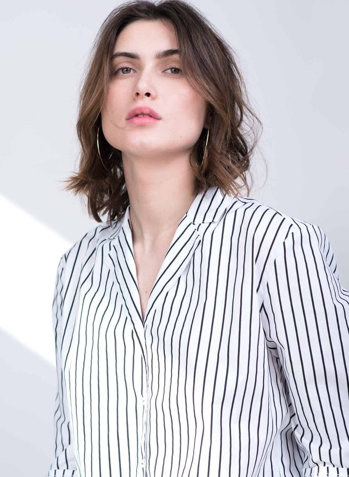 Marseille feminine striped cotton spandex blouse with jacket collar.