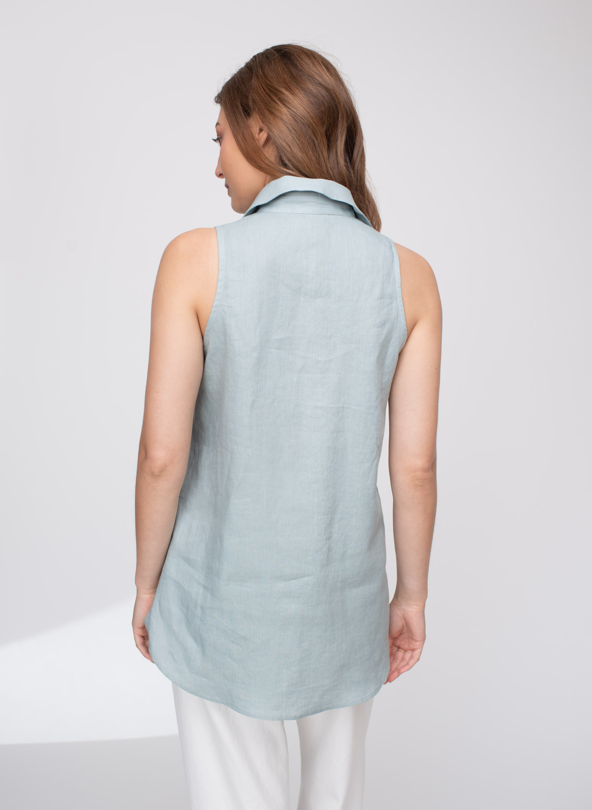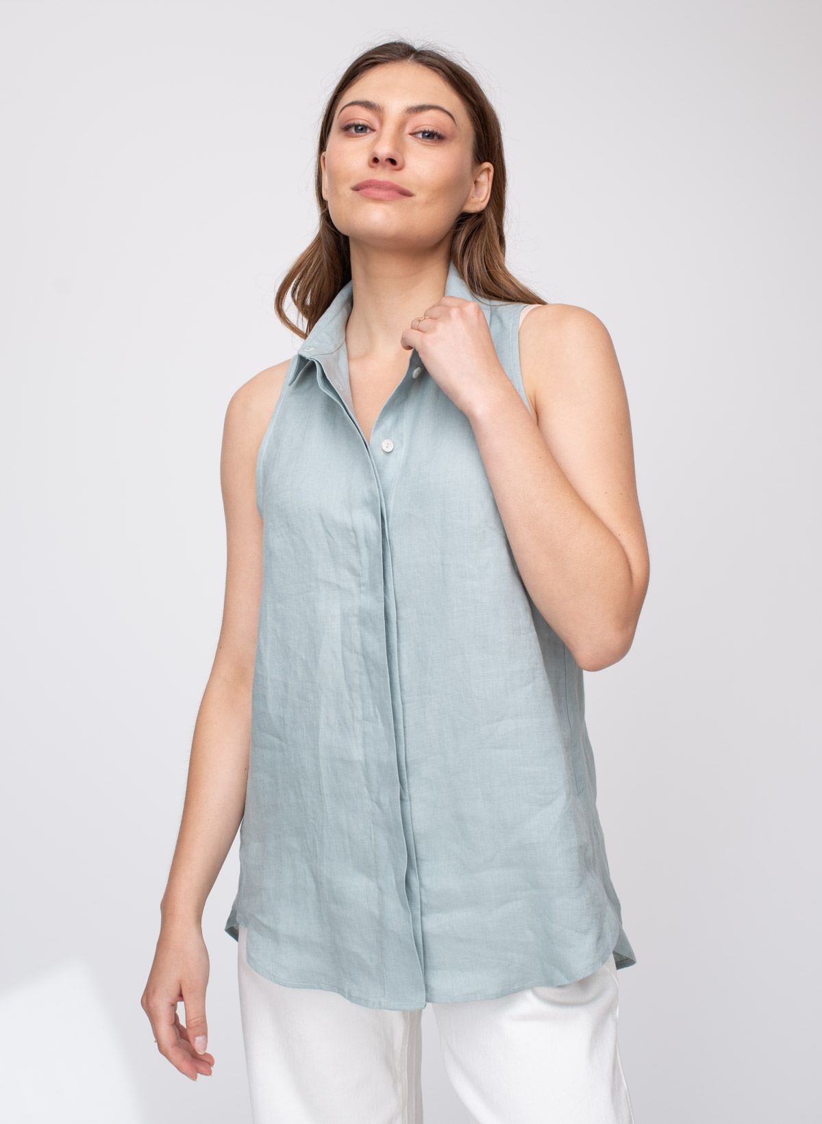 Megan sleeveless linen buttoned down top.