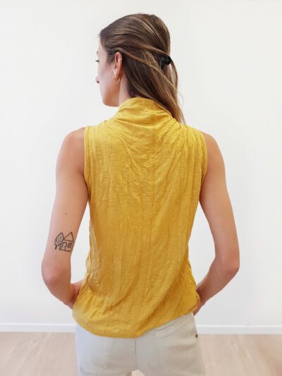 Mellisa sleeveless light weight textured top with drapy collar.