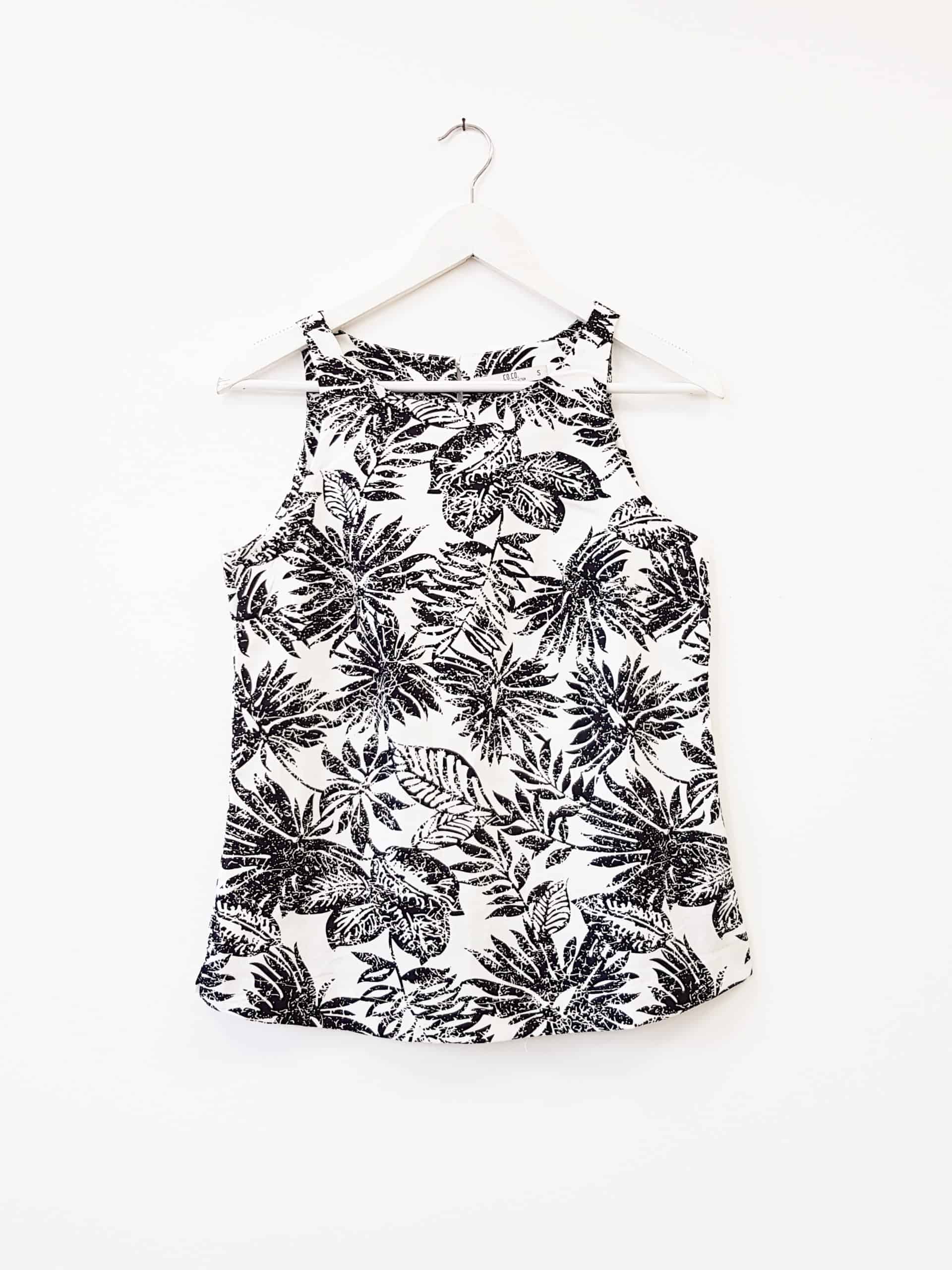 Bali printed cotton spandex halter top with back zipper.
