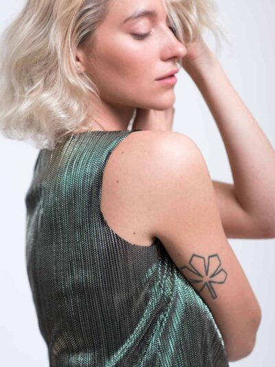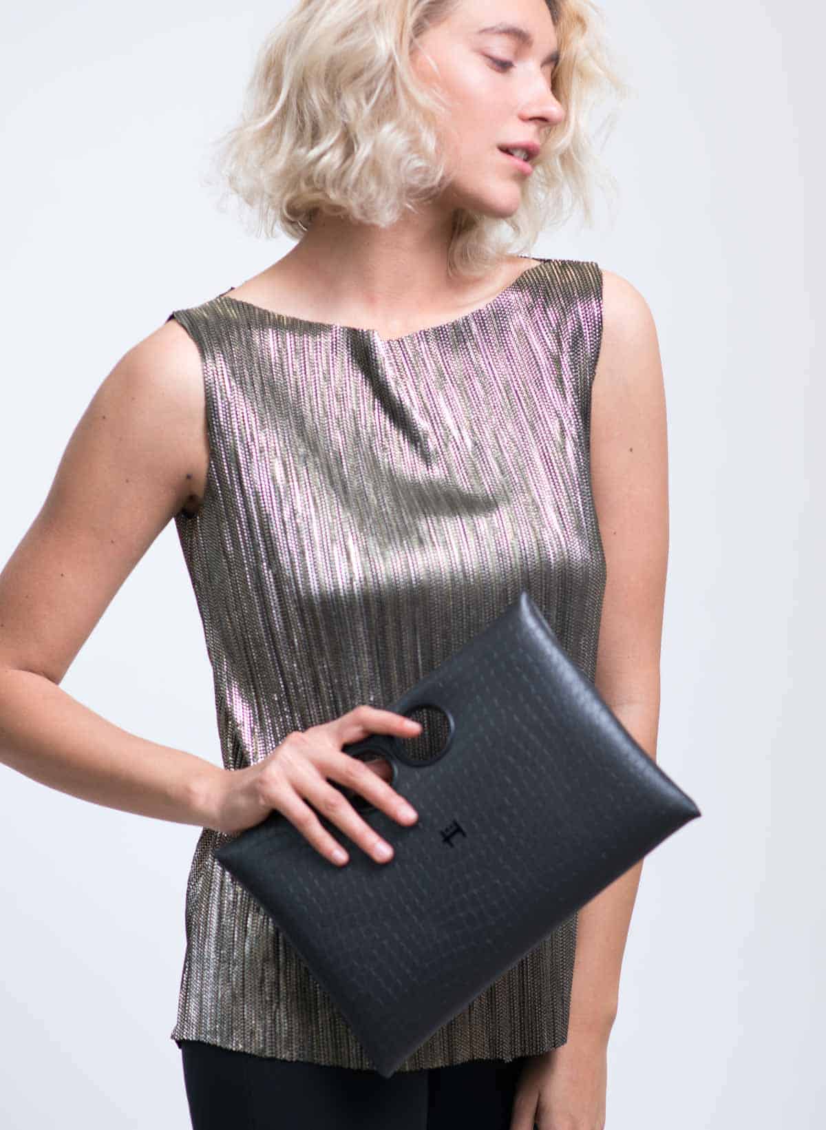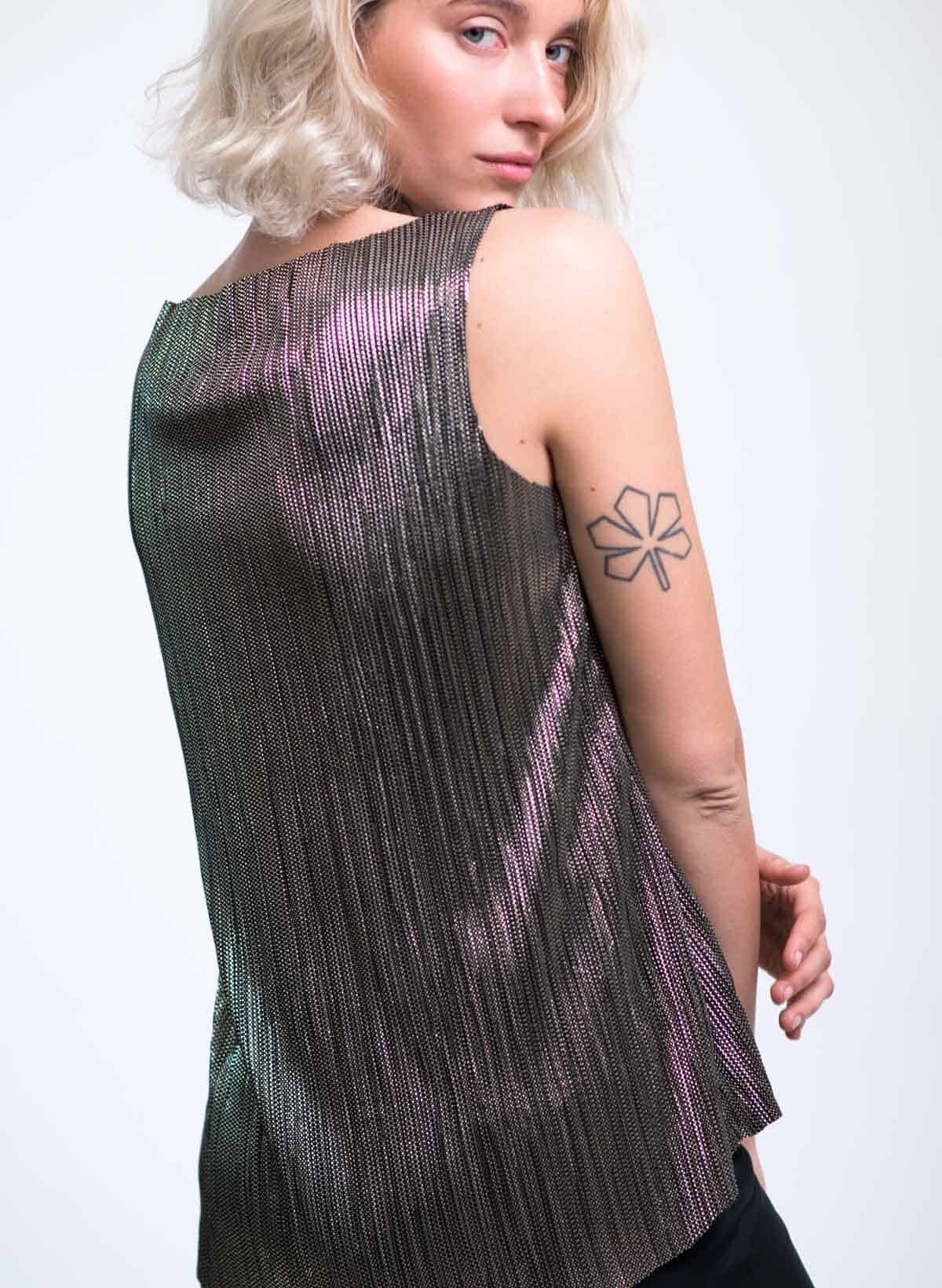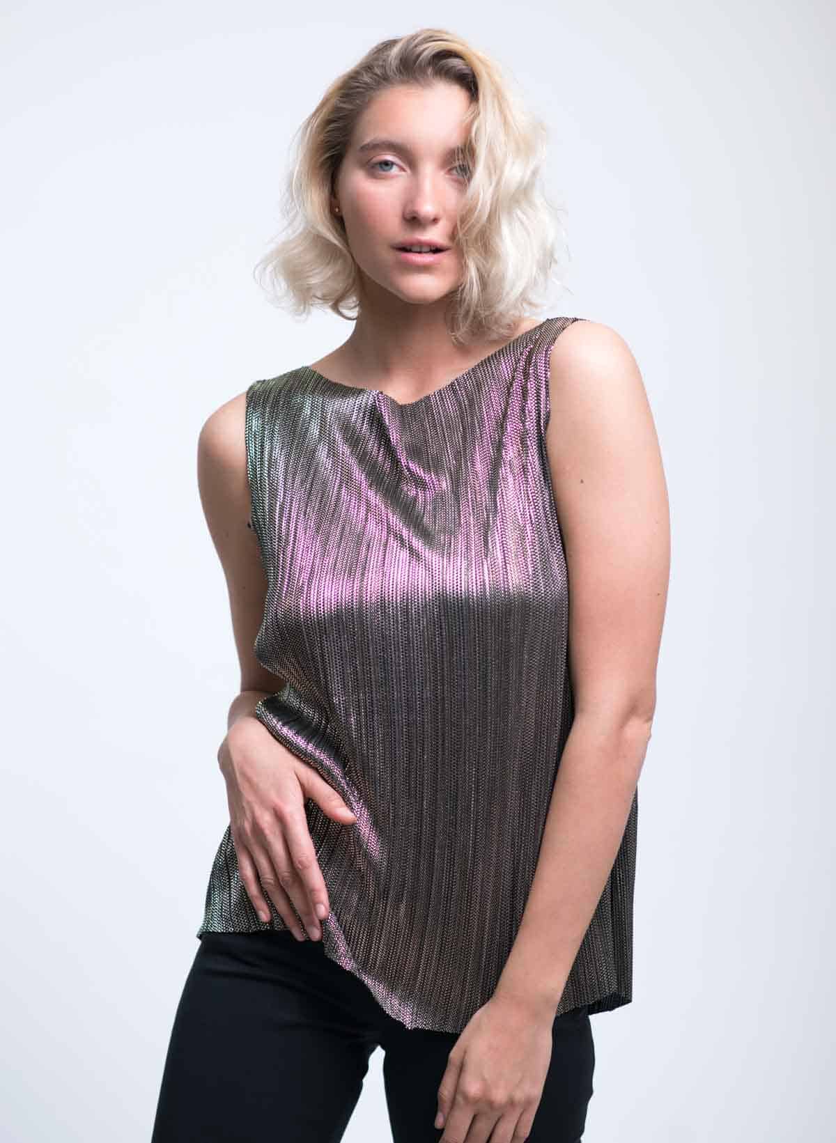 Michal shiny plisee boat neck tank-top.
