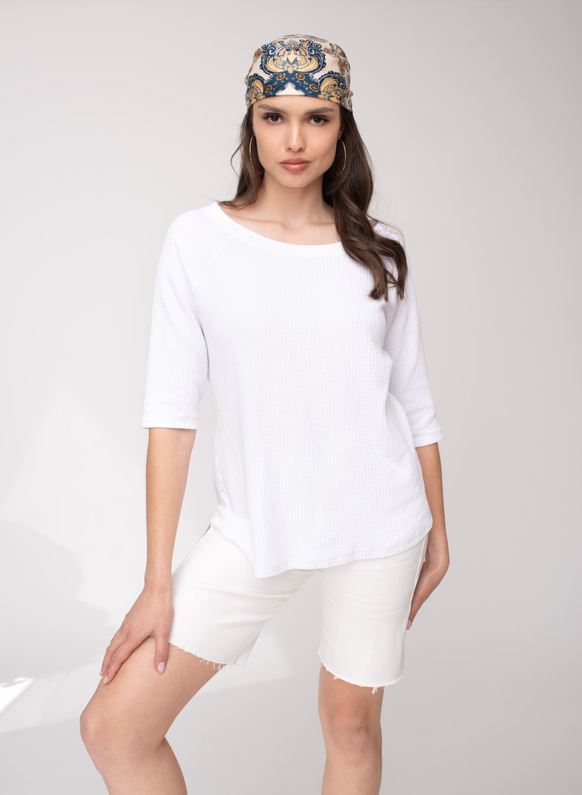 Briza waffle cotton raglan T top.