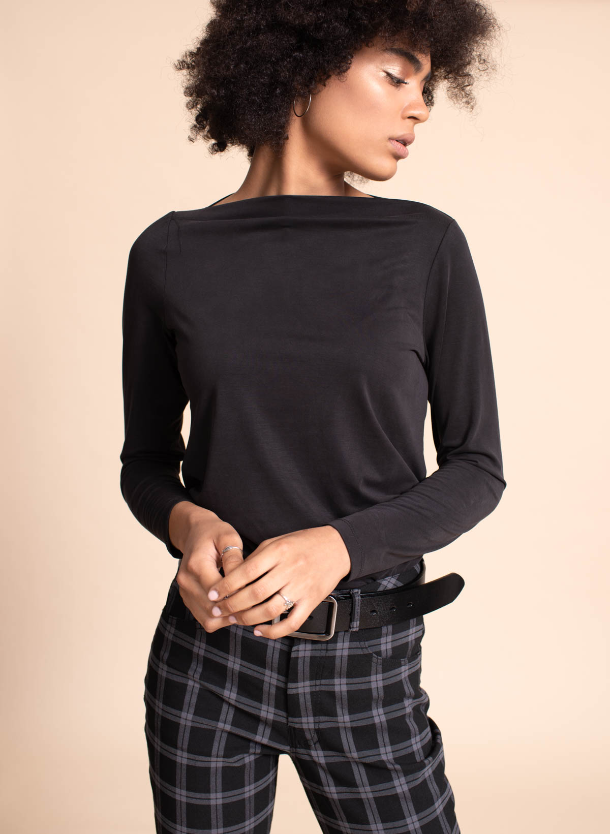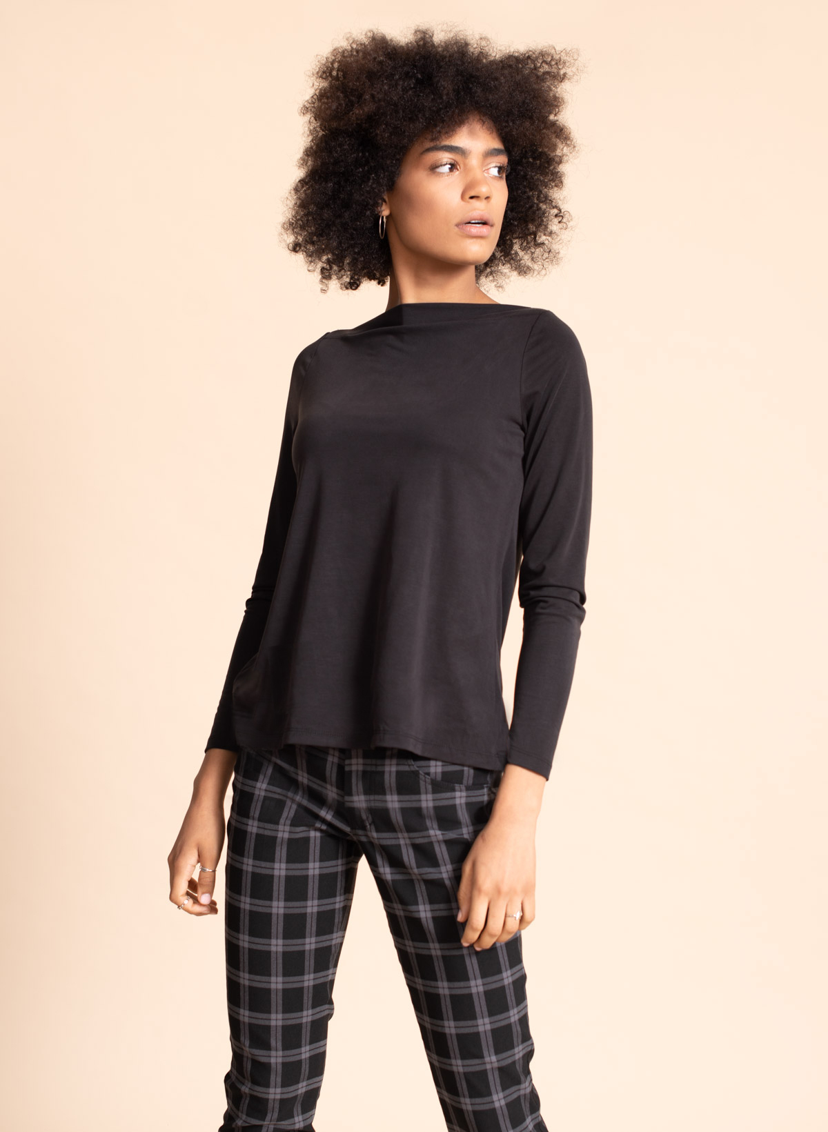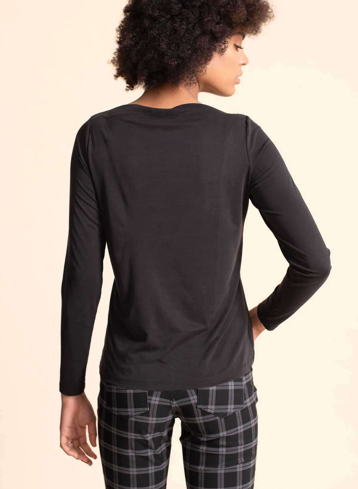 Logan single cupro T shirt with straight neck line.