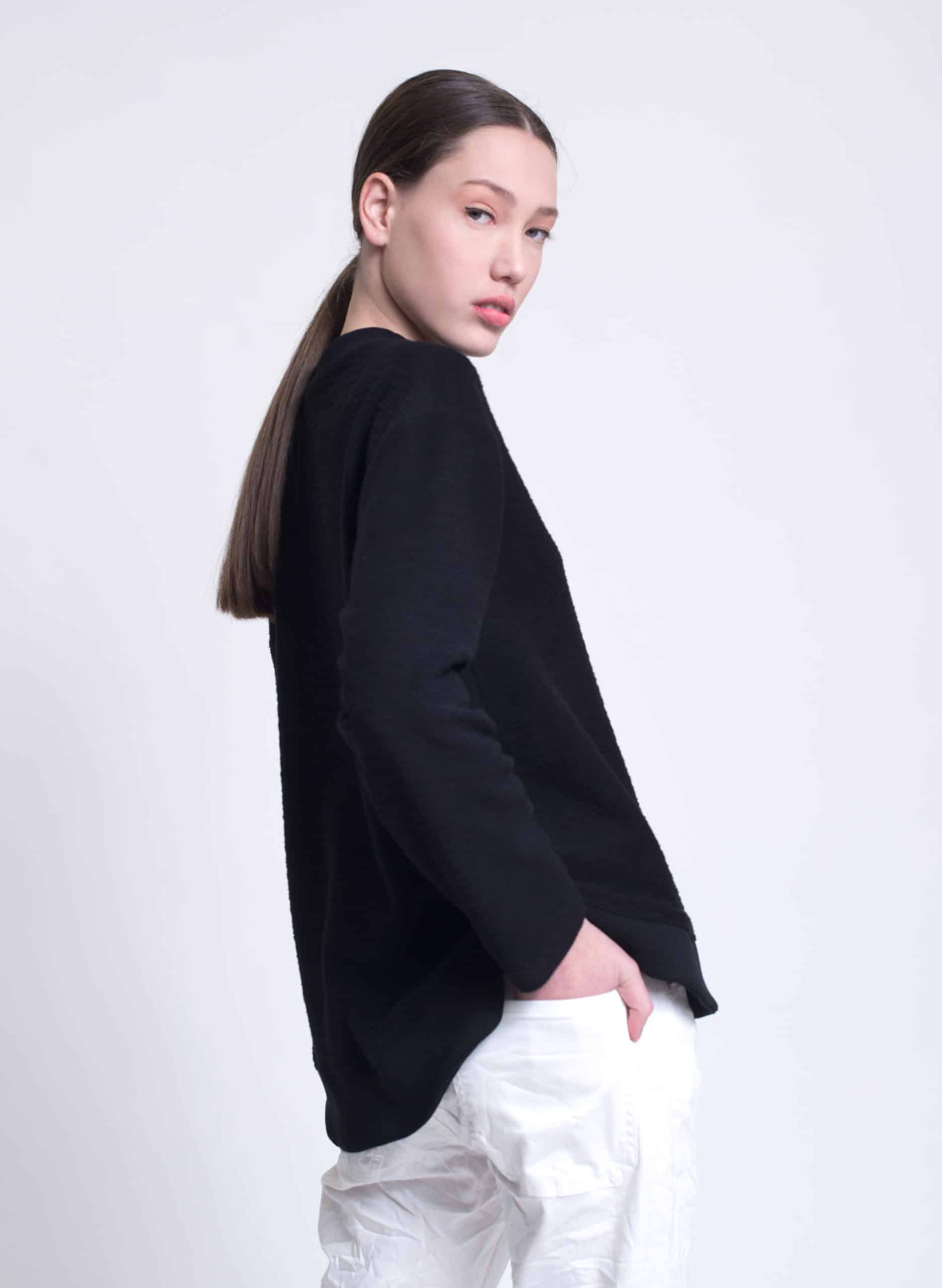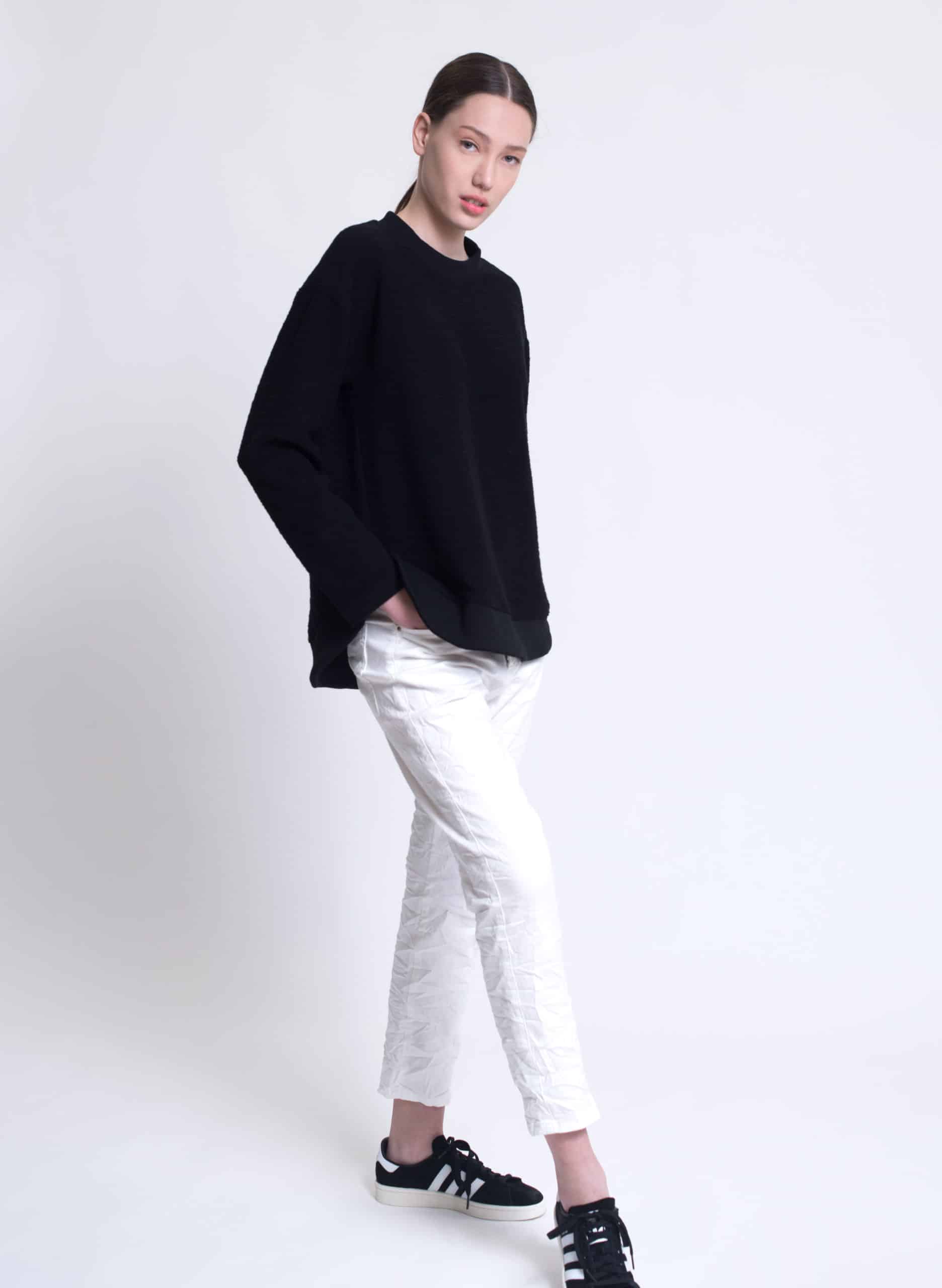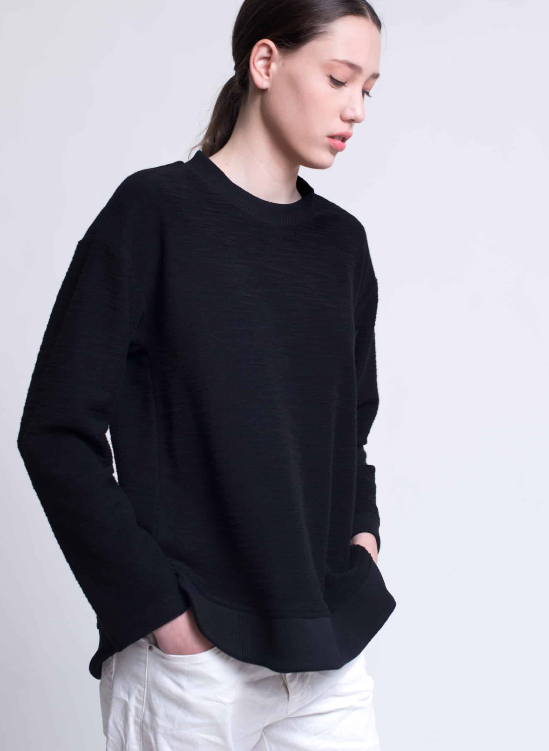 Terry textured cotton sweatshirt with round rib hemline.