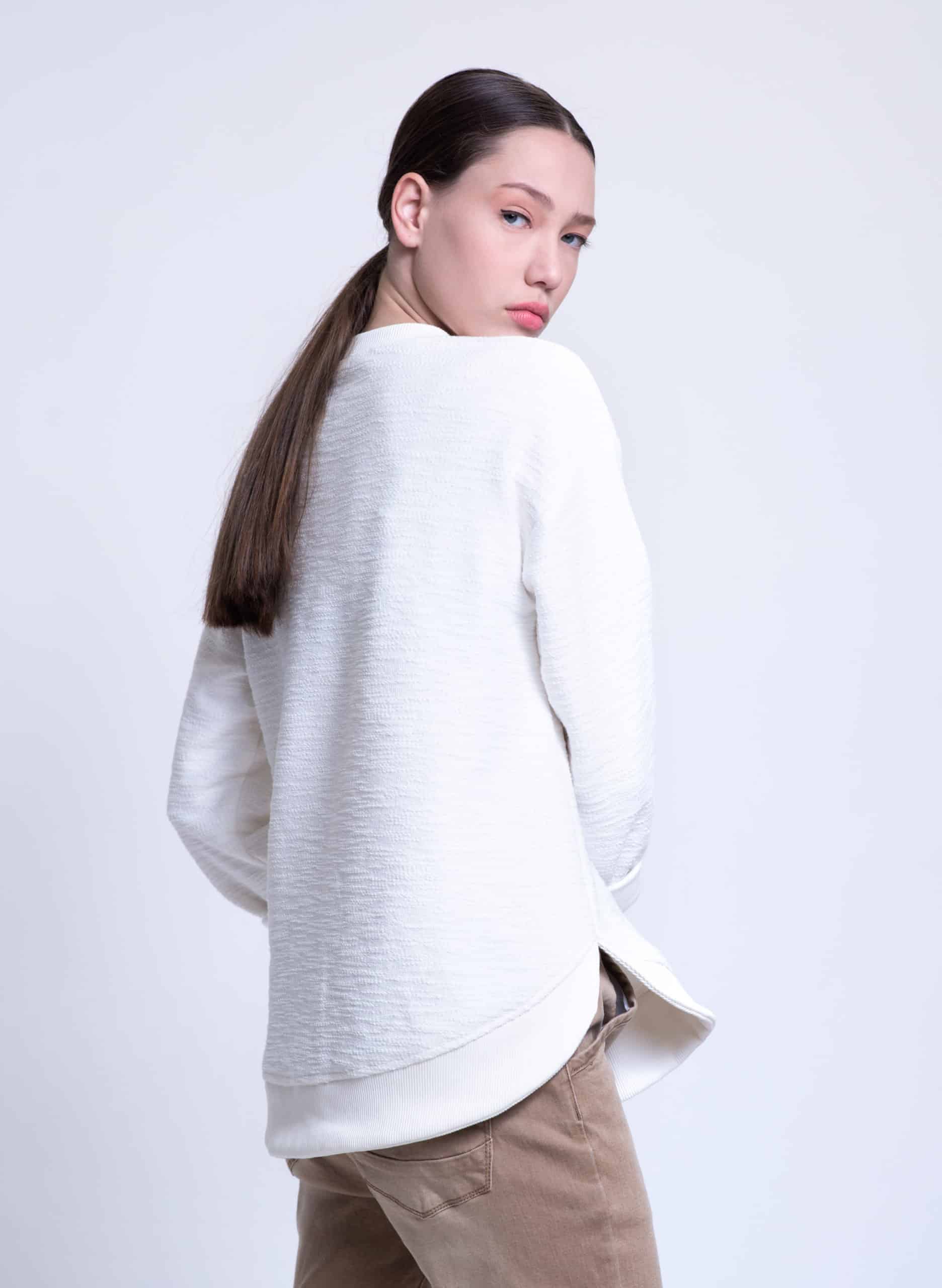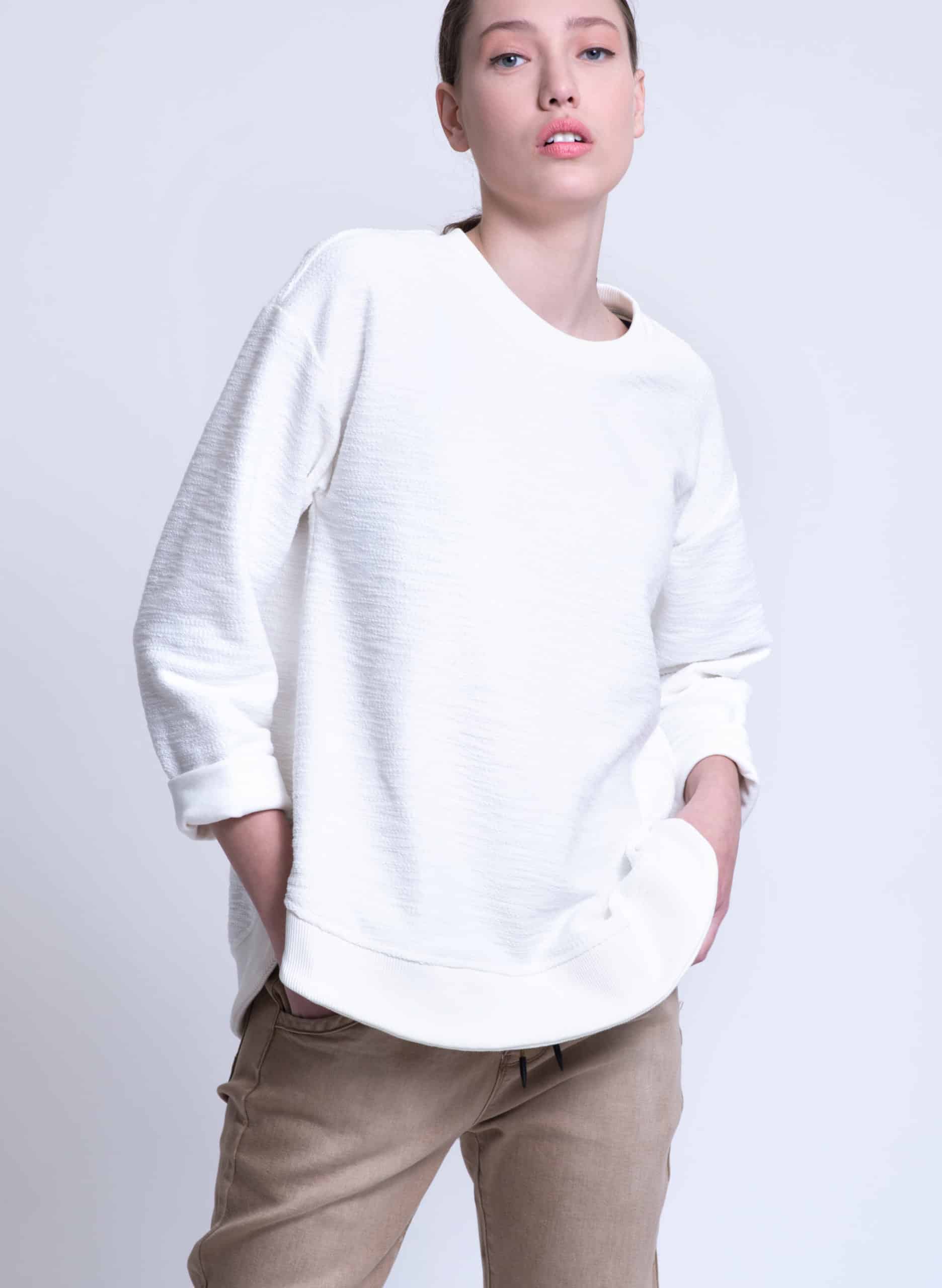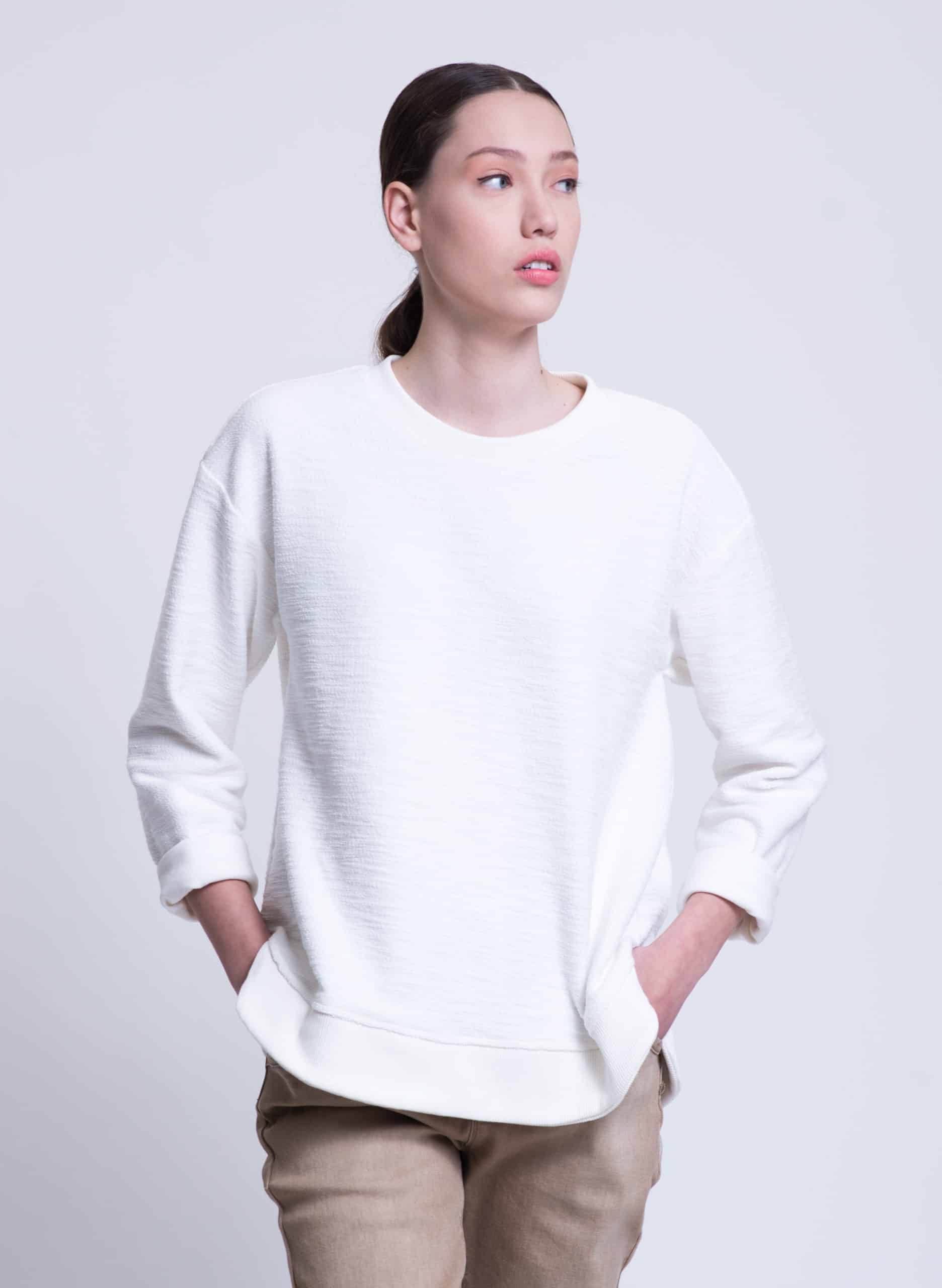 Terry textured cotton sweatshirt with round rib hemline.