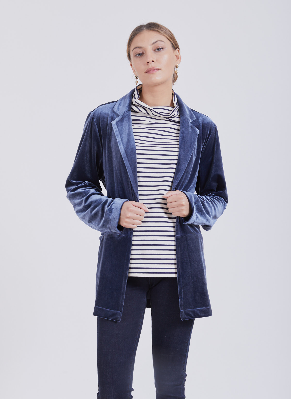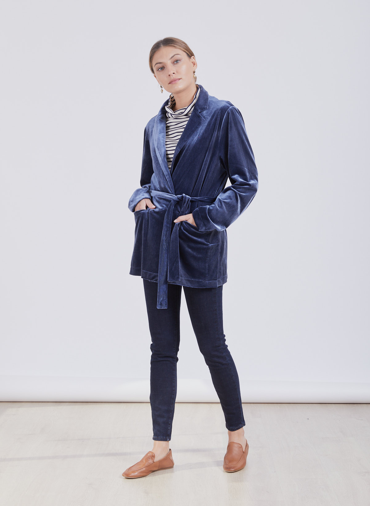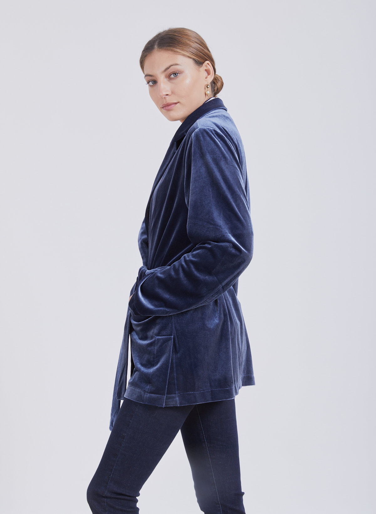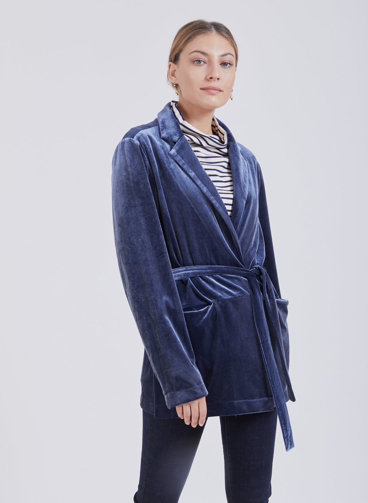 King velvet belted jacket.Size guide Model 176 CM, Wearing size S Materials 100% polyester