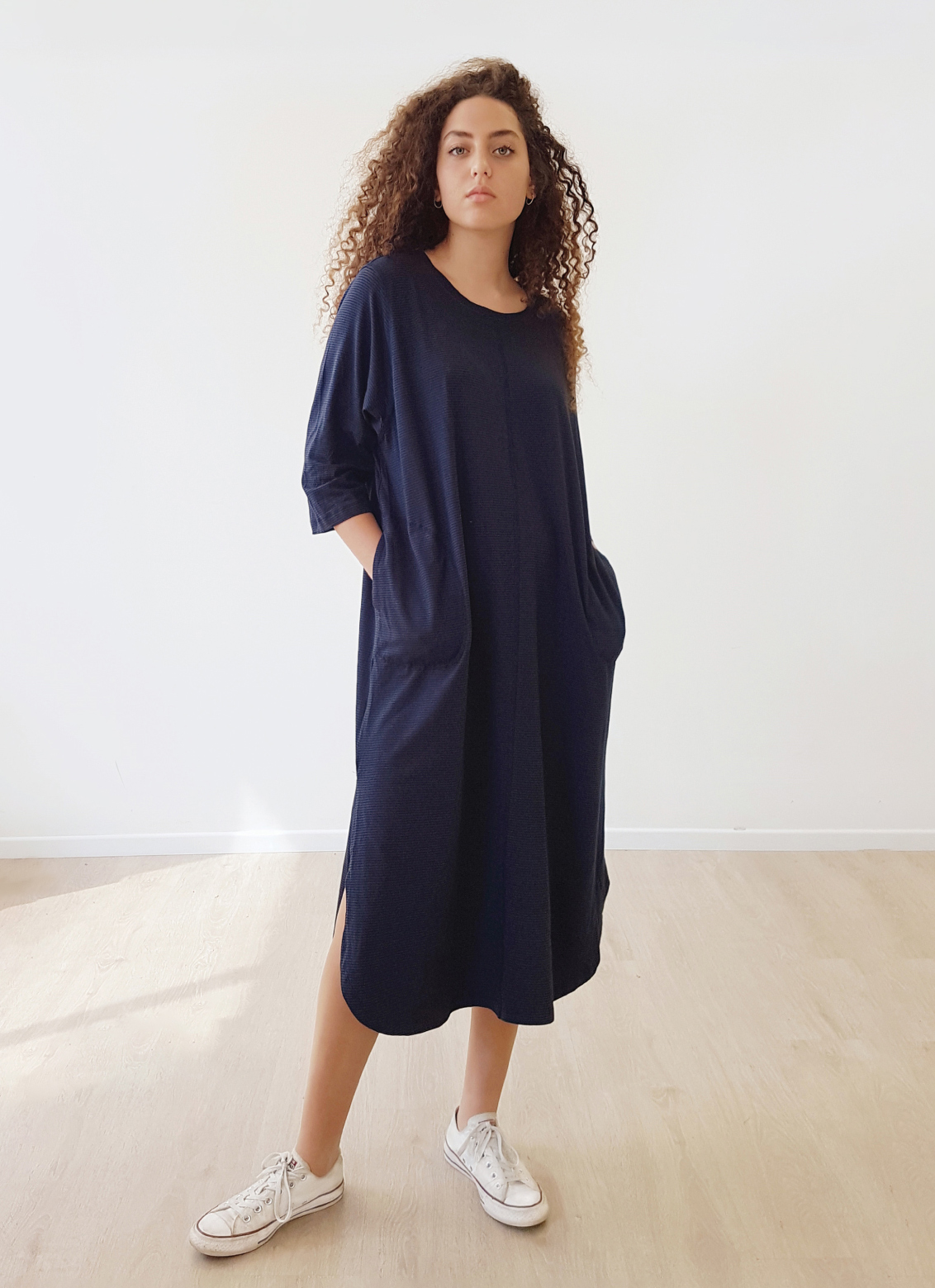 Alva oversize cotton modal T-dress with side pockets.
