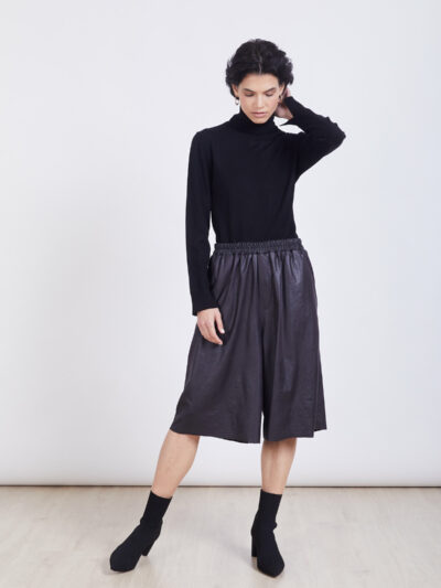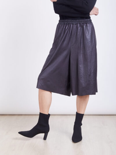 Milan mock leather soft culotte trousers with elastic waist and side pockets.Size guide Model 176 CM, Wearing size S Materials 95% polyester, 5% lycra