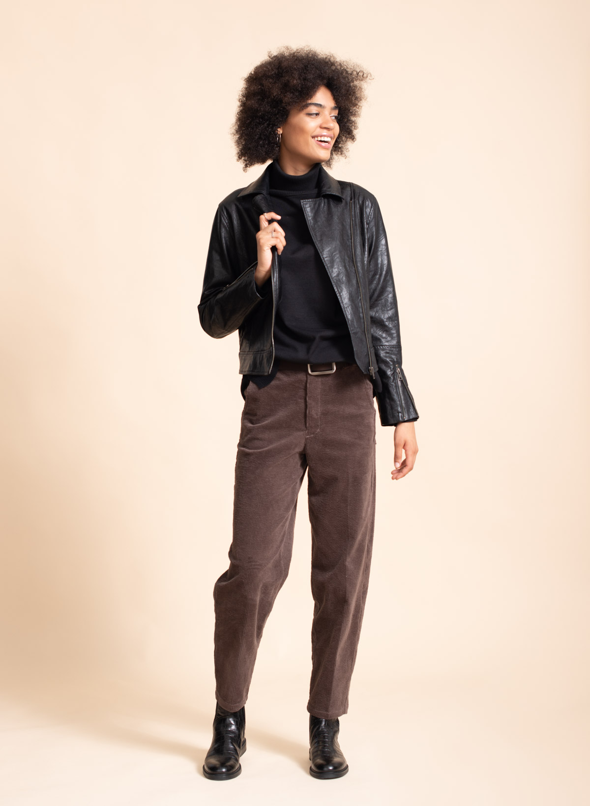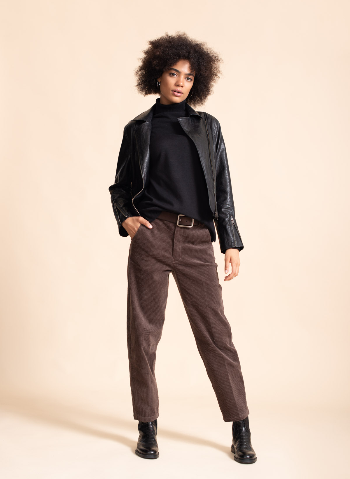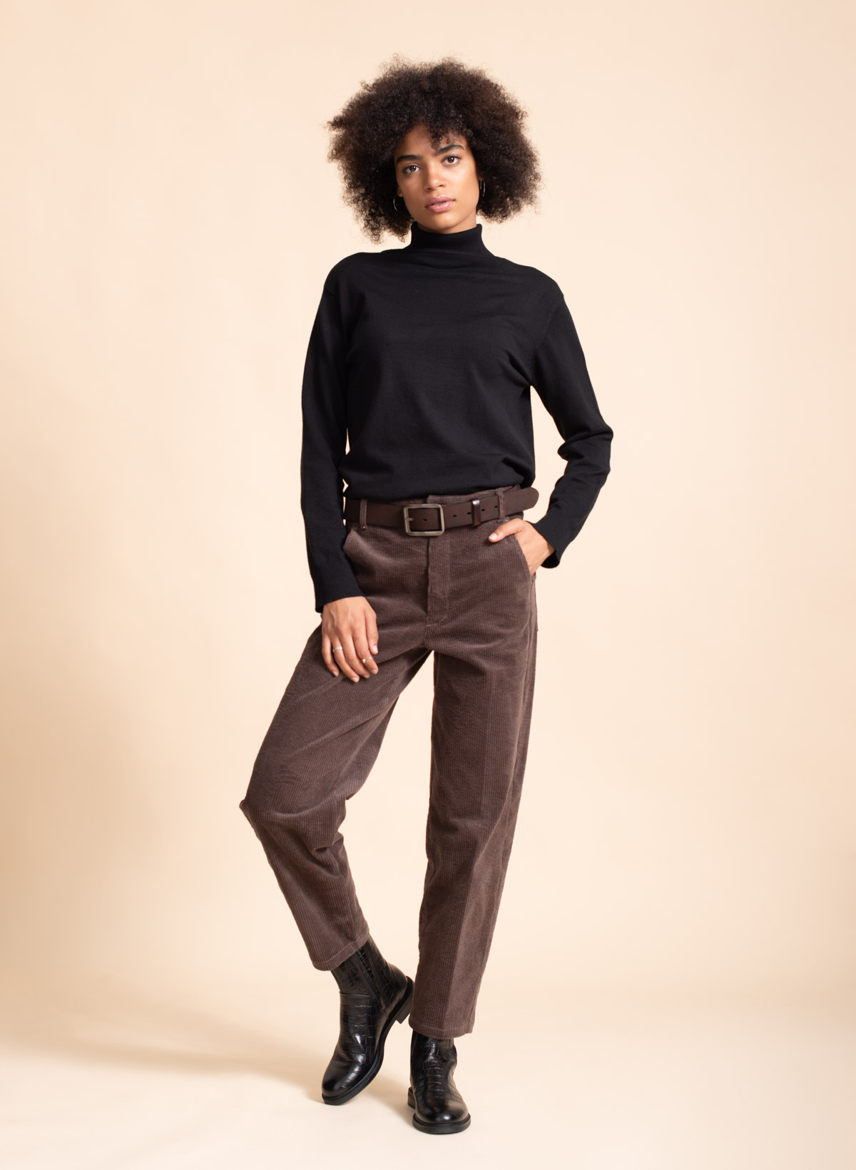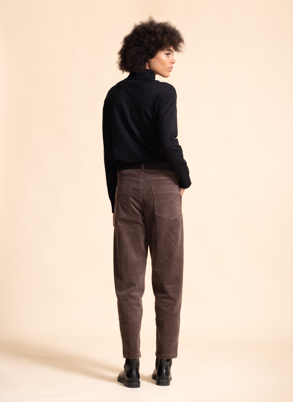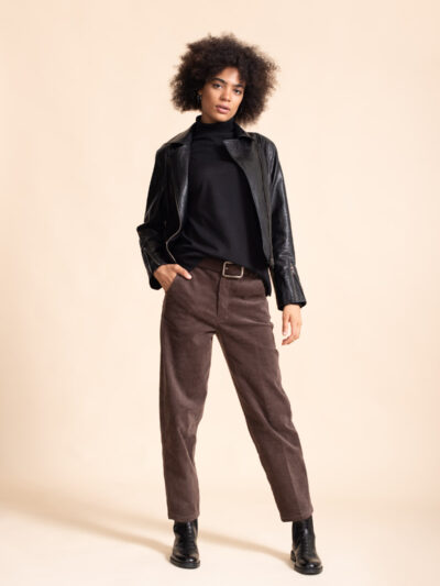 Nico corduroy cotton stretch carrot shape pants.