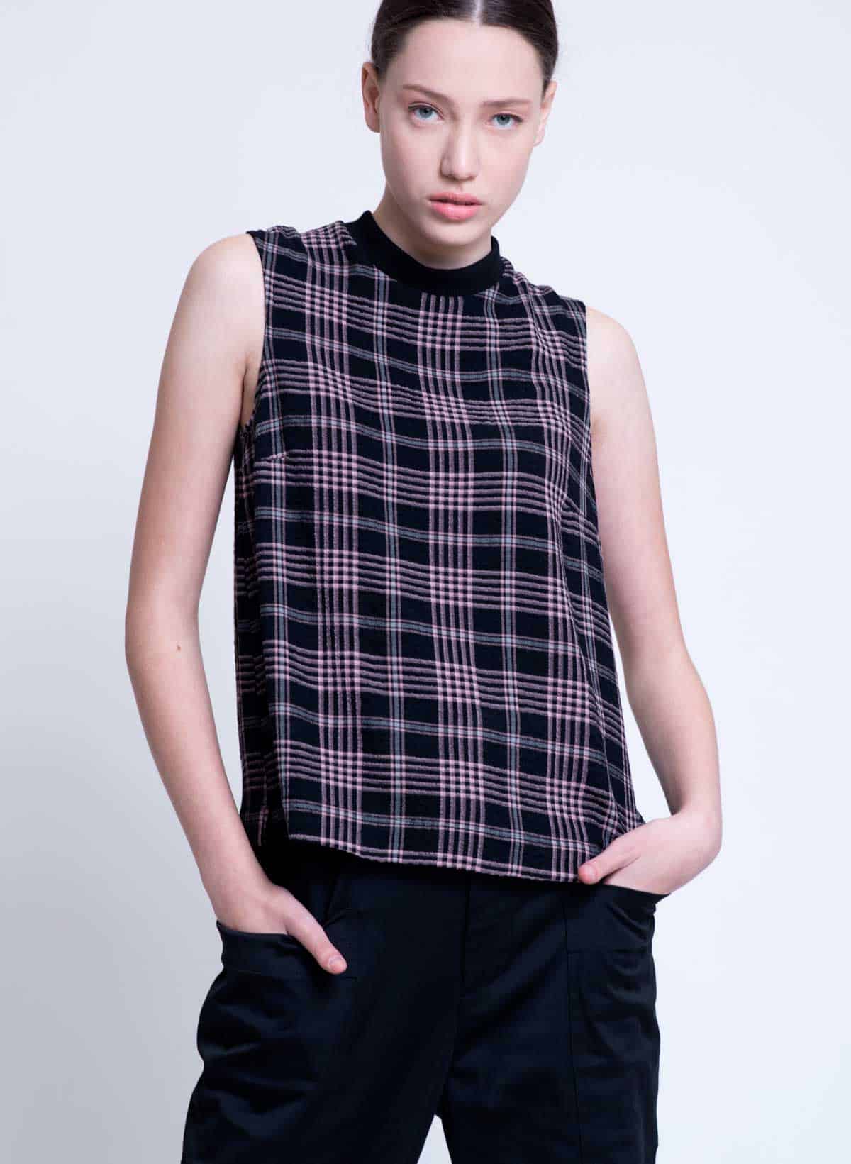Lali checked crepe sleeveless top with rib collar.Size guide Model 176 CM, Wearing size S Materials 60% Viscose 40% polyester