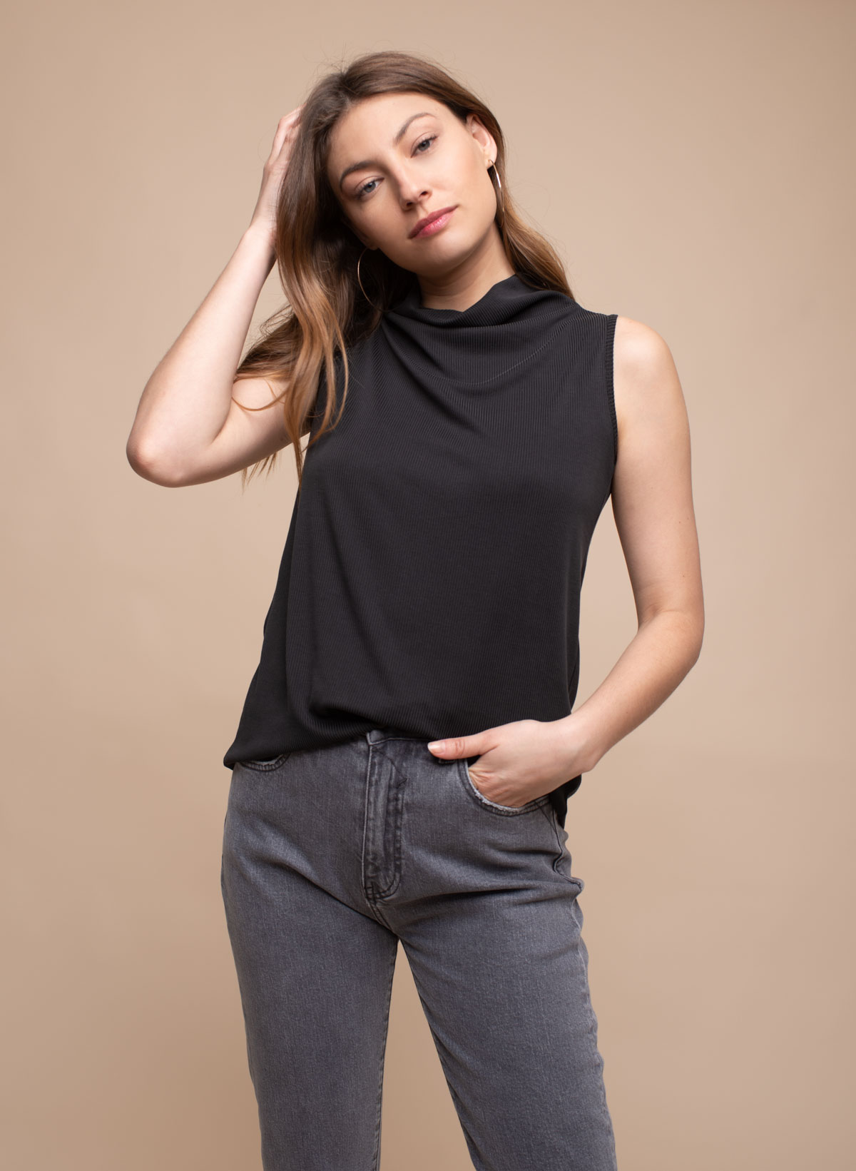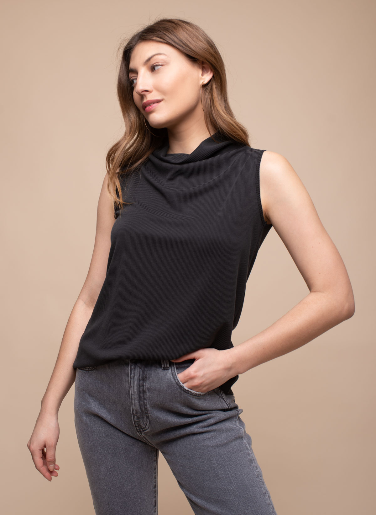 Shadow s-21 sleeveless viscose mix rib top.