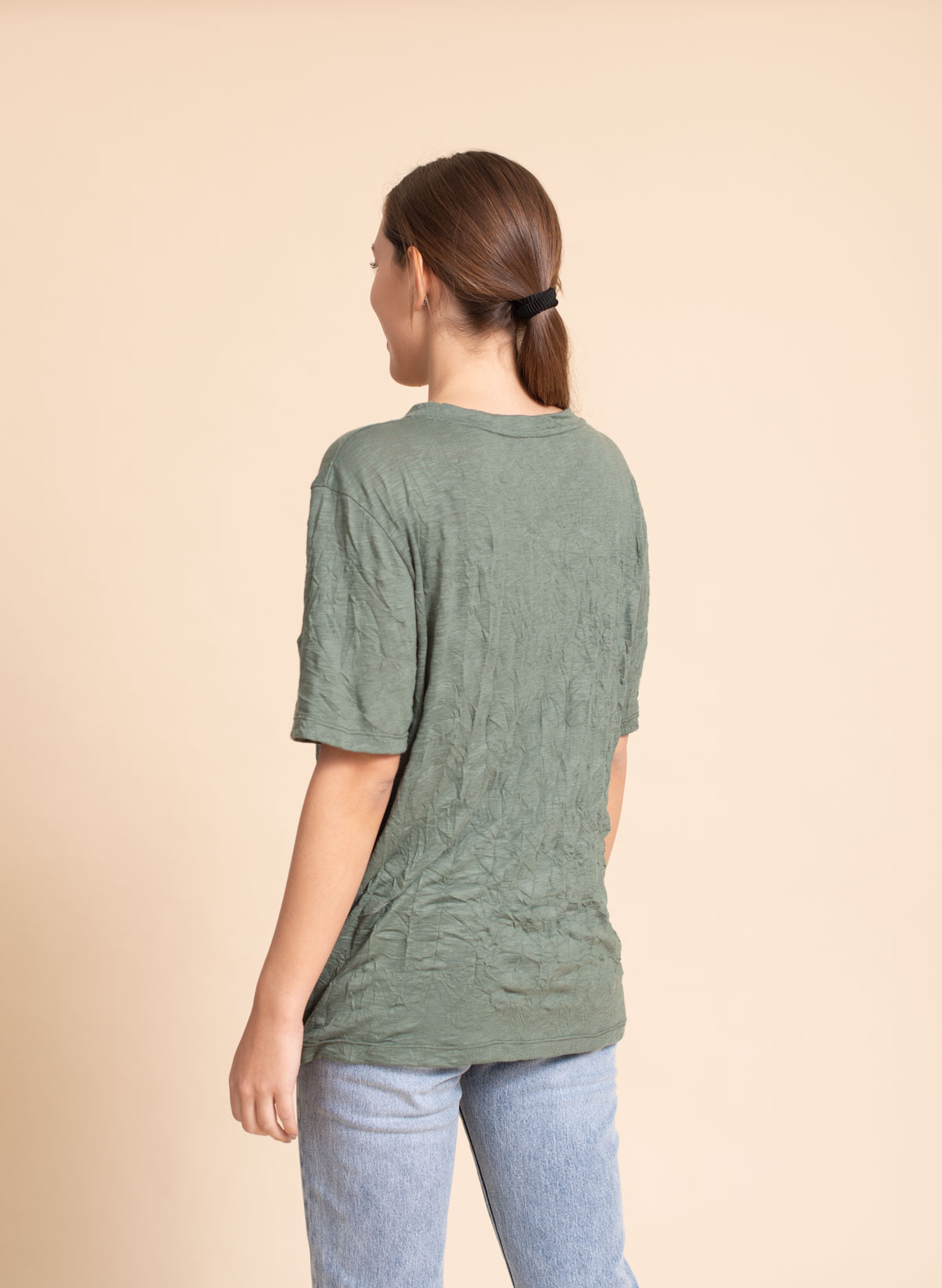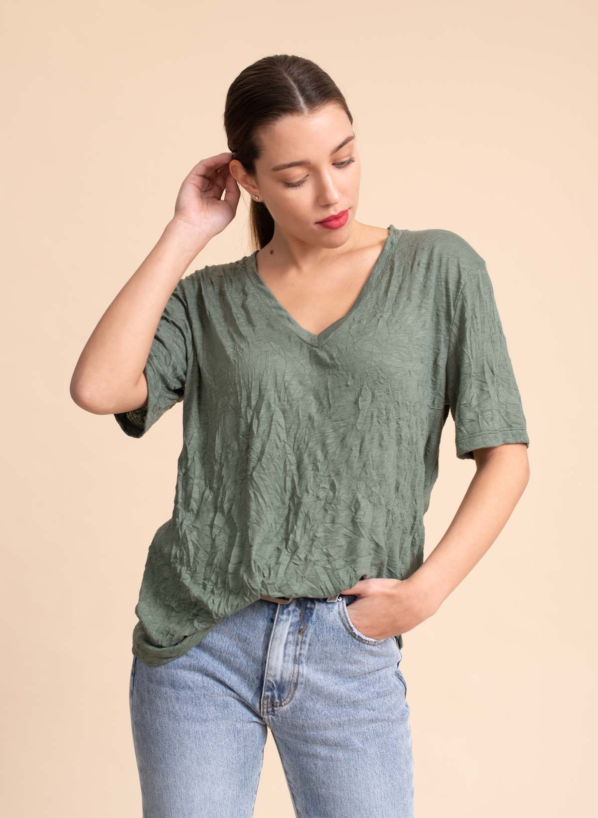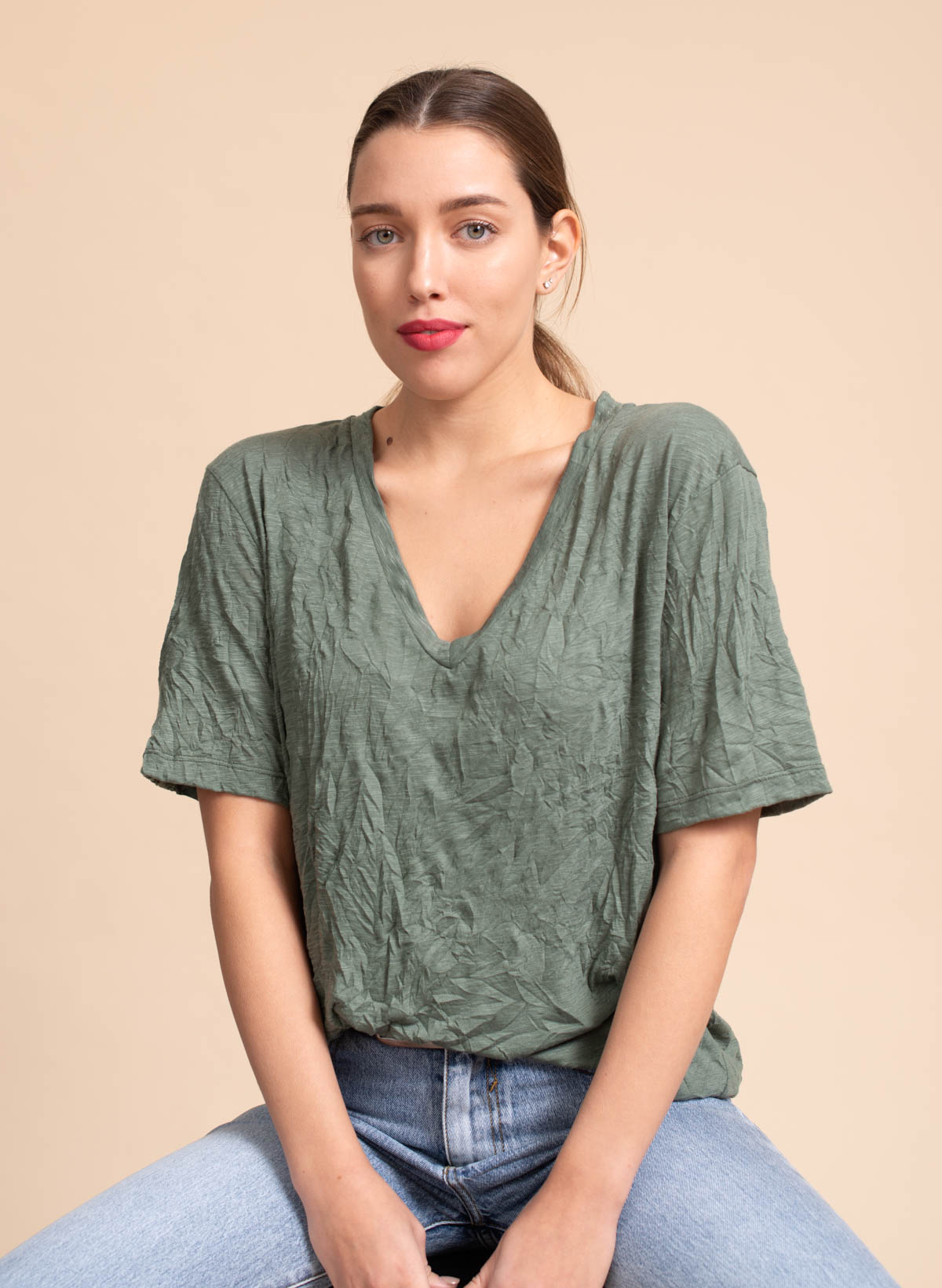 Bar viscose mix wrinckled relaxed V neck T shirt.