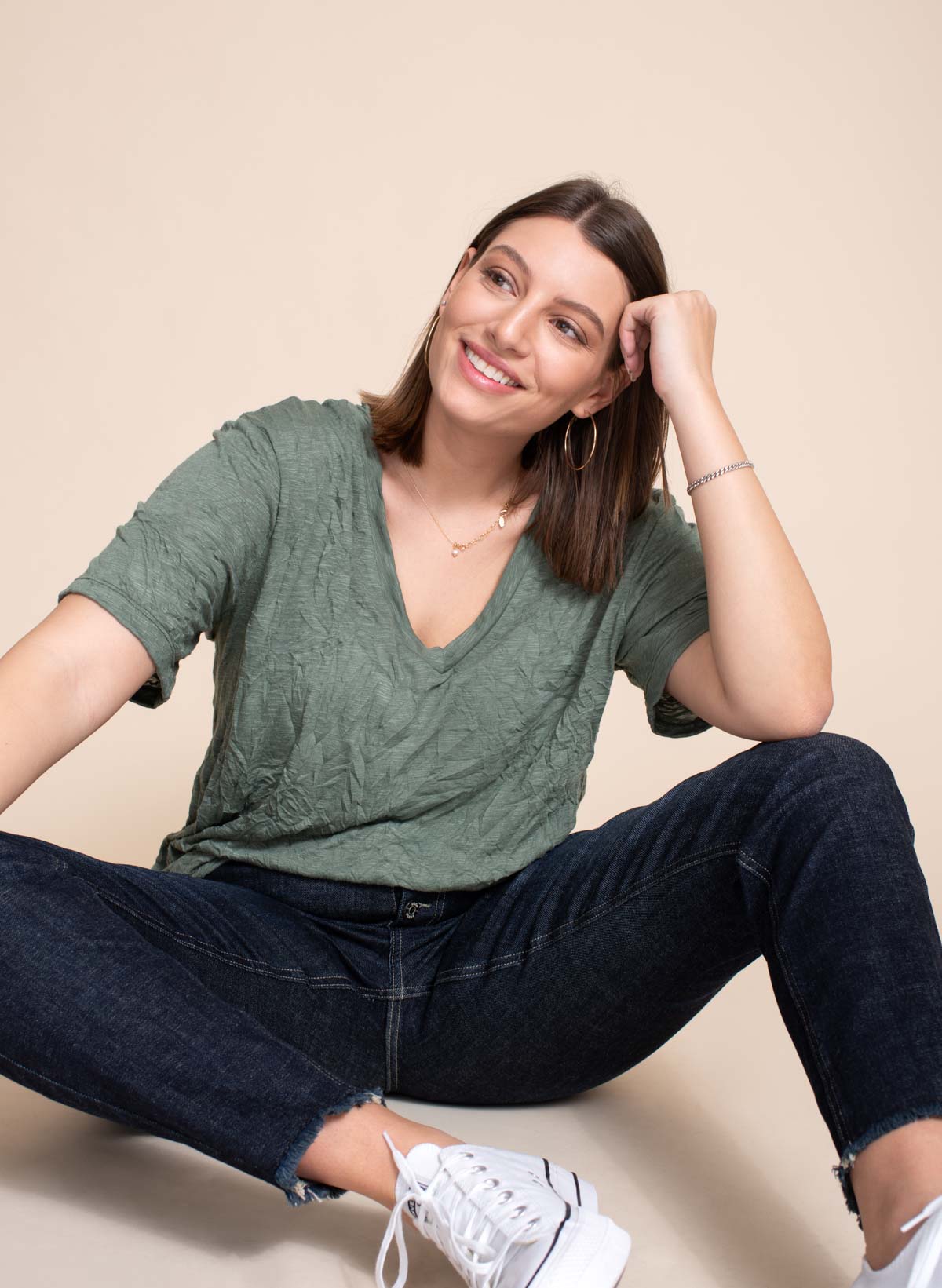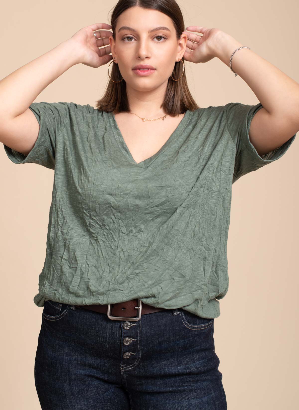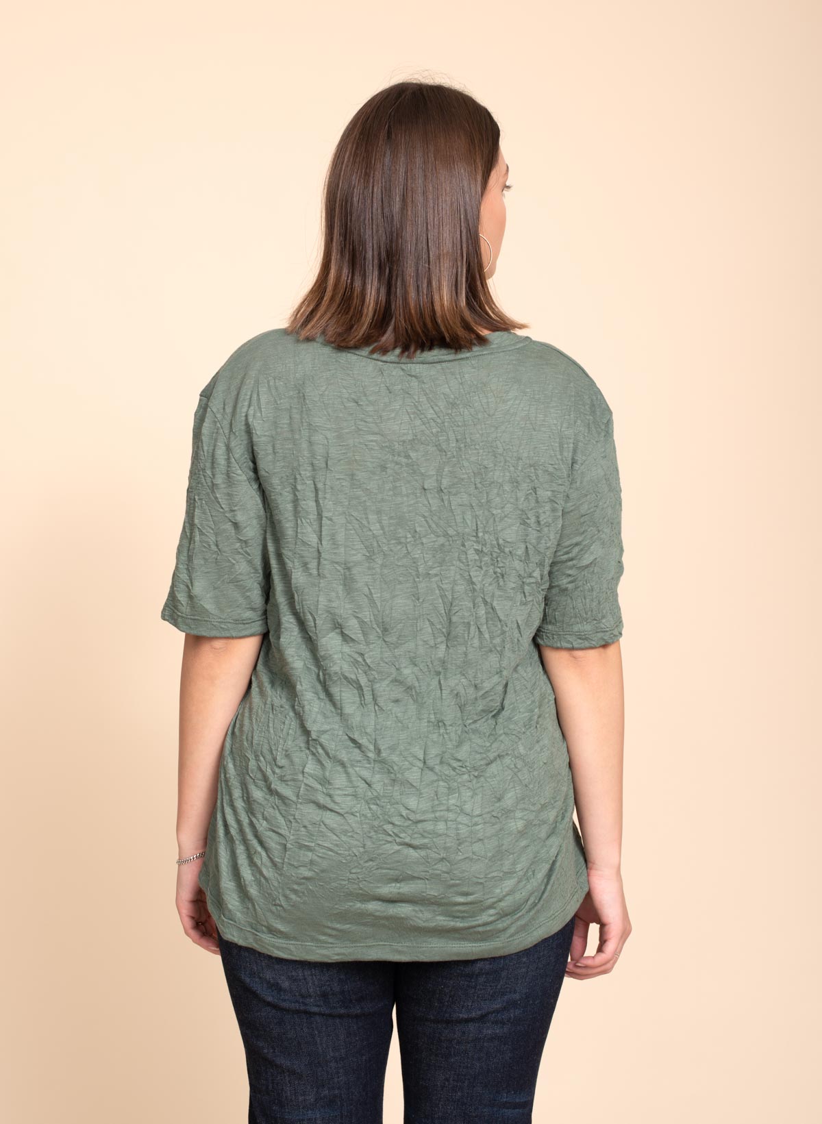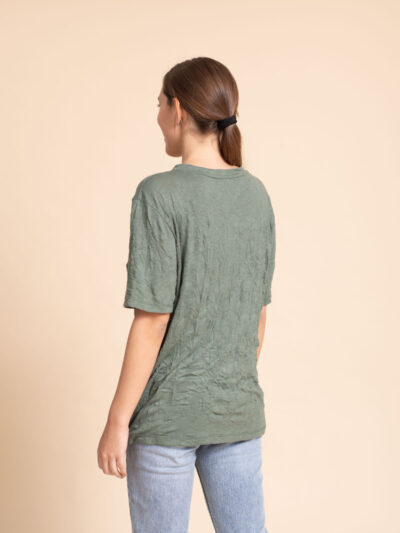 Bar viscose mix wrinckled relaxed V neck T shirt.
