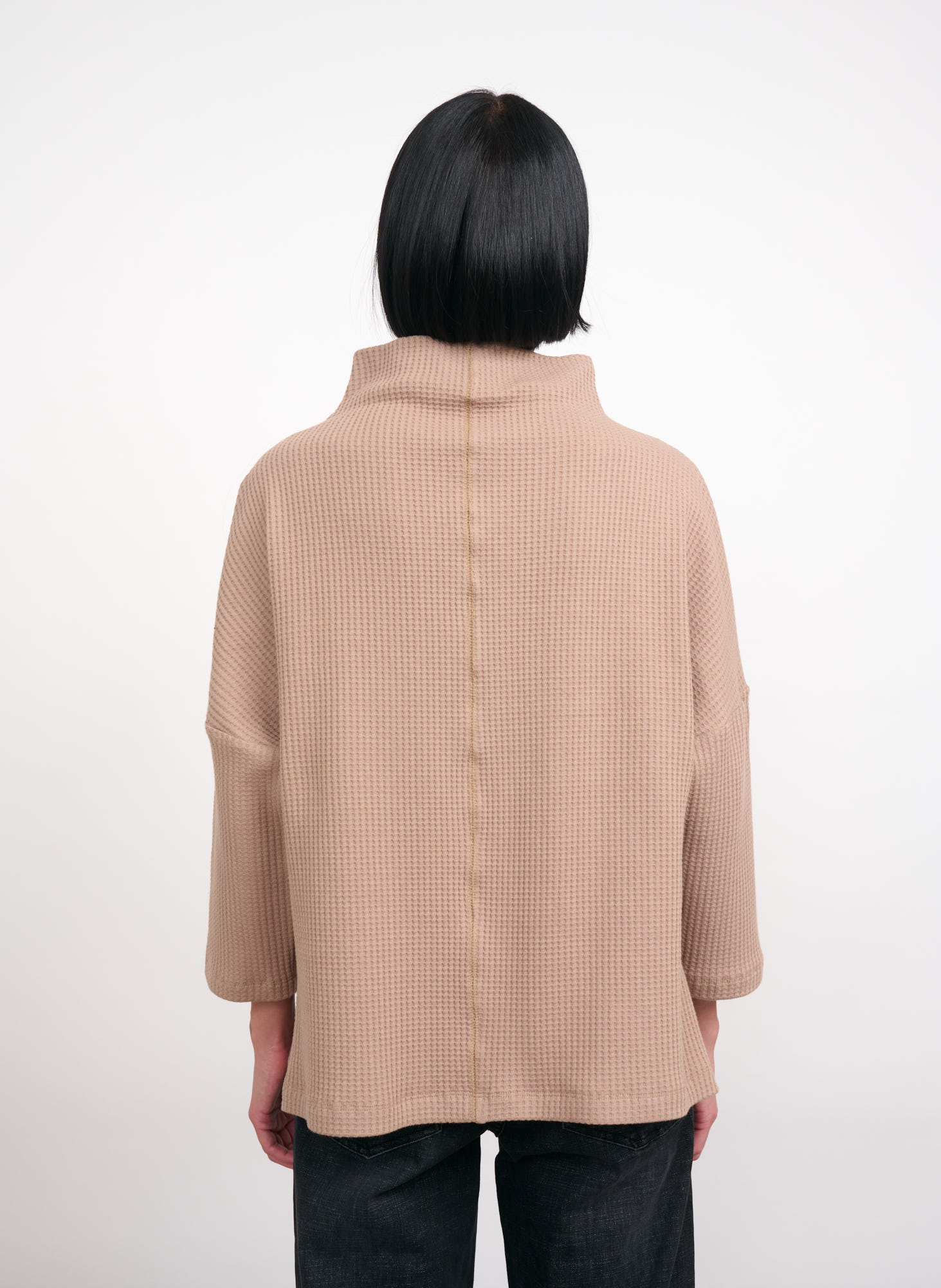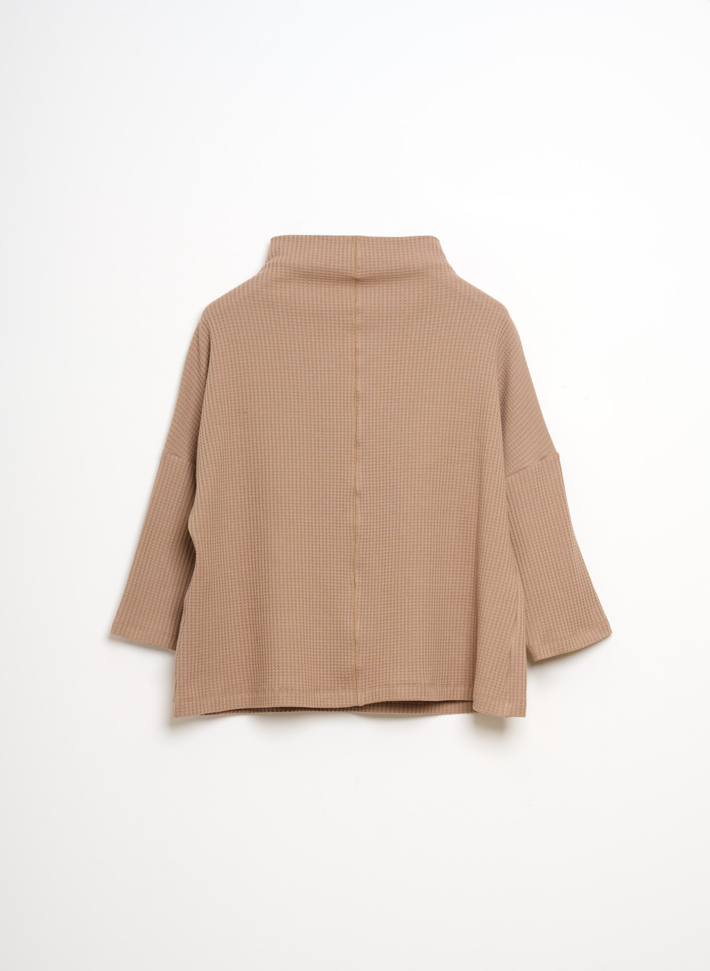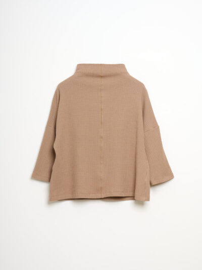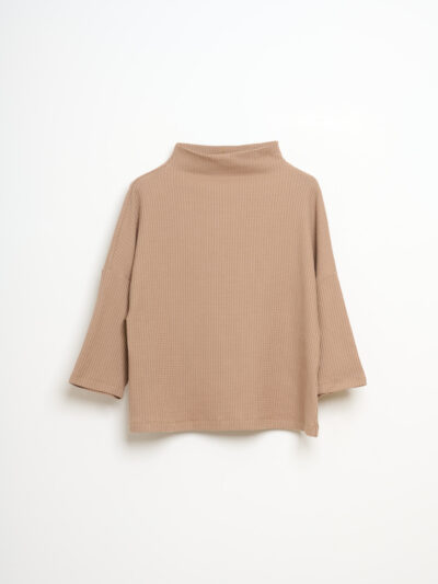 Sophie cotton jersey waffle top with high collar.